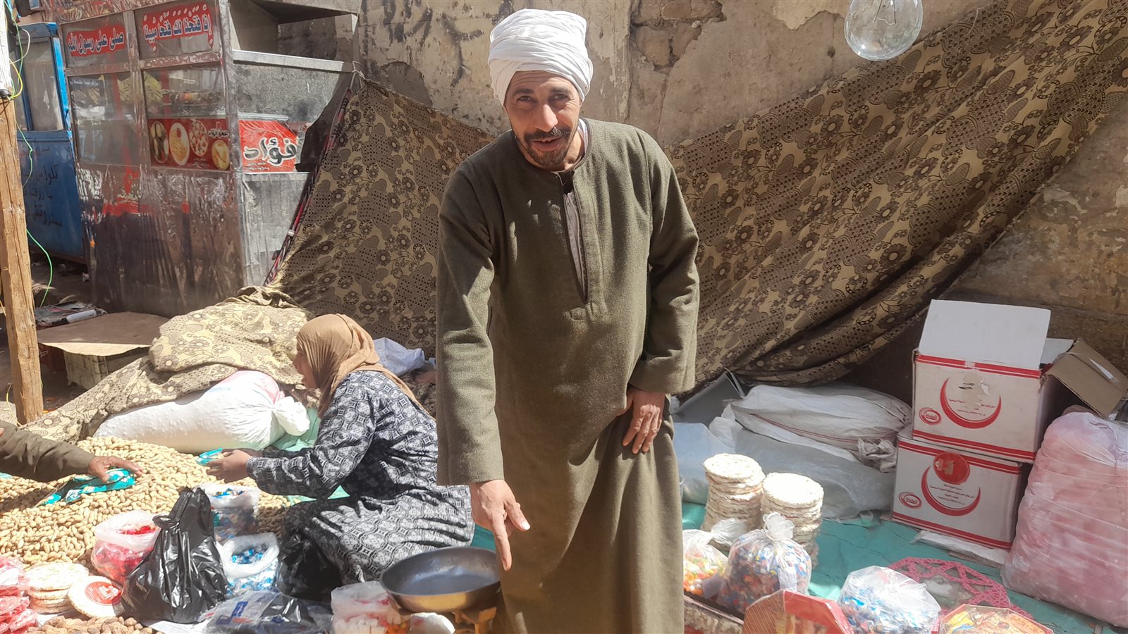 وخلال جولة "فيتو" بساحة مولد السيدة حورية، التقينا "أبو محمد" أحد باعة المسليات والحلوى "الفول والحمص والبلح" الذي أكد أنه يجوب بضاعته جميع الموالد، سعيًا على رزقه ورزق أولاده الأربعة، مصطحبًا زوجته، كون هذا العمل هو المصدر الوحيد لدخلهم، لافتًا إلى أنه ورث المهنة عن والده الذي كان يصطحبه في الموالد بجميع محافظات الجمهورية.