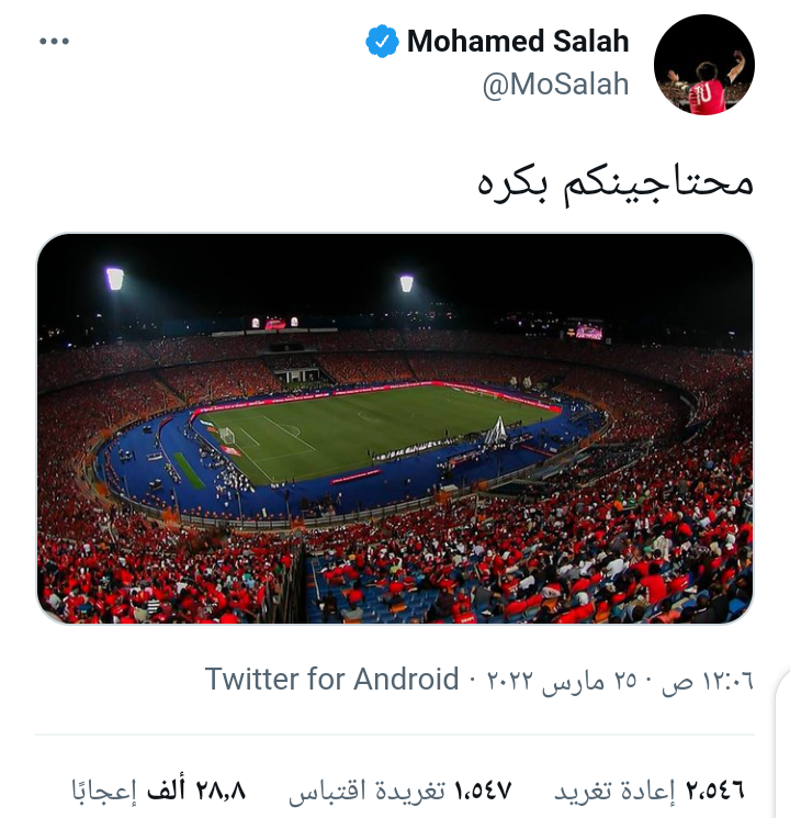 وقال صلاح عبر حسابه الرسمي بـ"تويتر": "محتاجينكم بكرة".