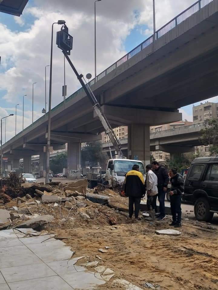 وقامت إدارة الإنارة بالانتهاء من تركيب أعمدة الإنارة والكشافات ولحام الأبواب كما تمت أعمال الصيانة الشاملة لأعمدة الإنارة وإضاءتها تحت الكوبري الدائري المؤدي لطريق مصر الإسكندرية.