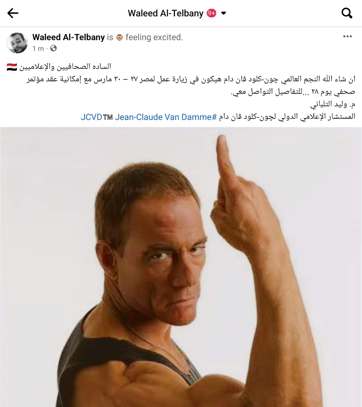 وأكد التلباني، أن فان دام، كان يرغب في التصوير بمصر، منذ آخر زيارة له إلى القاهرة، حيث سحرته المناطق الأثرية الفرعونية والدينية، وحتى الآن هناك عدة أماكن في مصر يريد فان دام التصوير داخلها، مثل الأهرامات، وبعض شوارع مصر الأثرية.