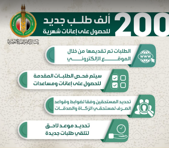 بيت الزكاة: 200 ألف طلب جديد للحصول على إعانات شهرية