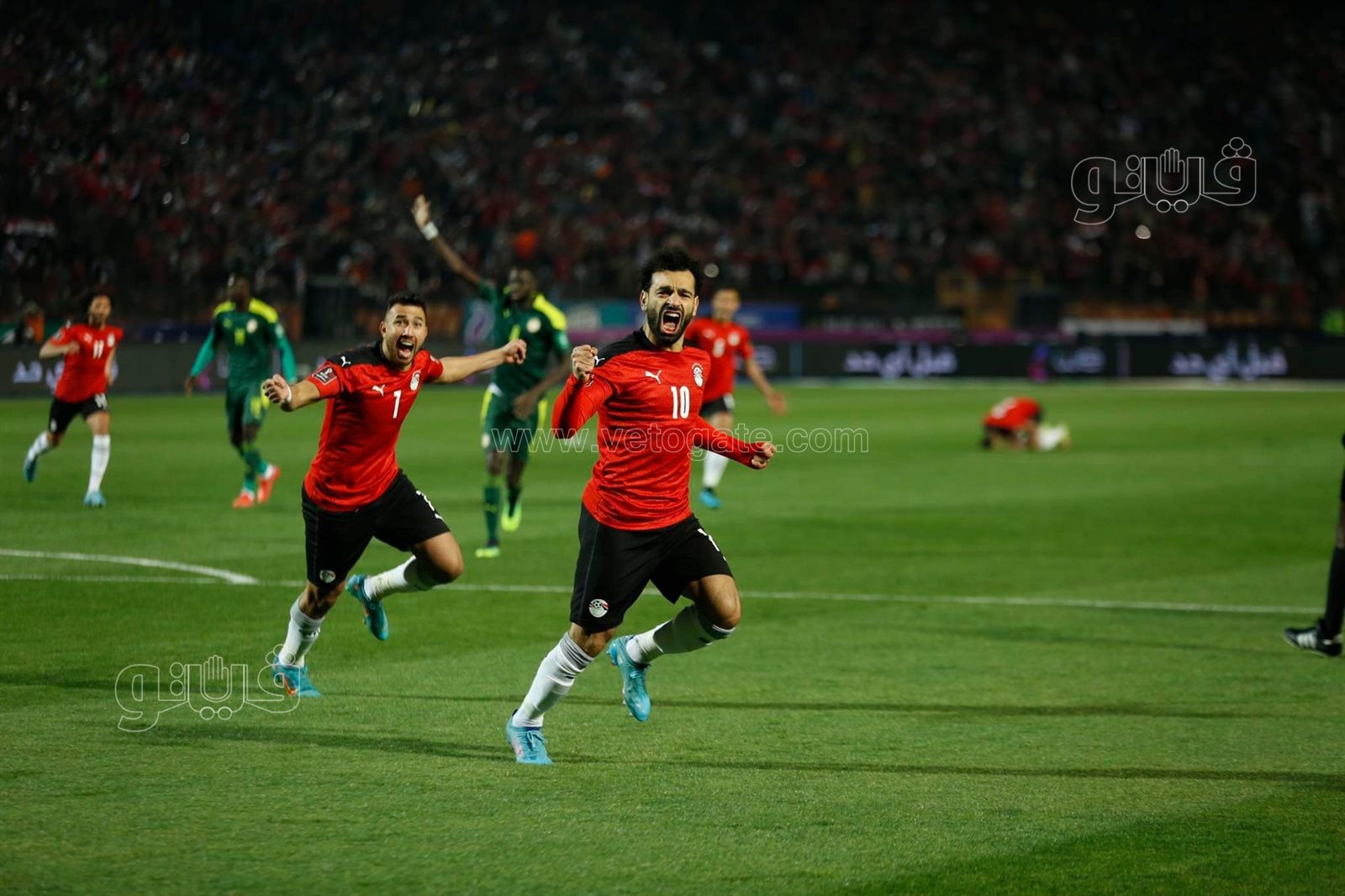٢٧ صورة ترصد طريقة احتفال محمد صلاح مع لاعبي المنتخب بالهدف الأول في السنغال