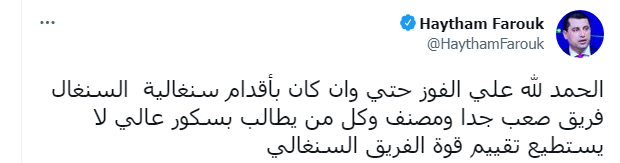 ماذا قال هيثم فاروق عقب فوز مصر على السنغال؟