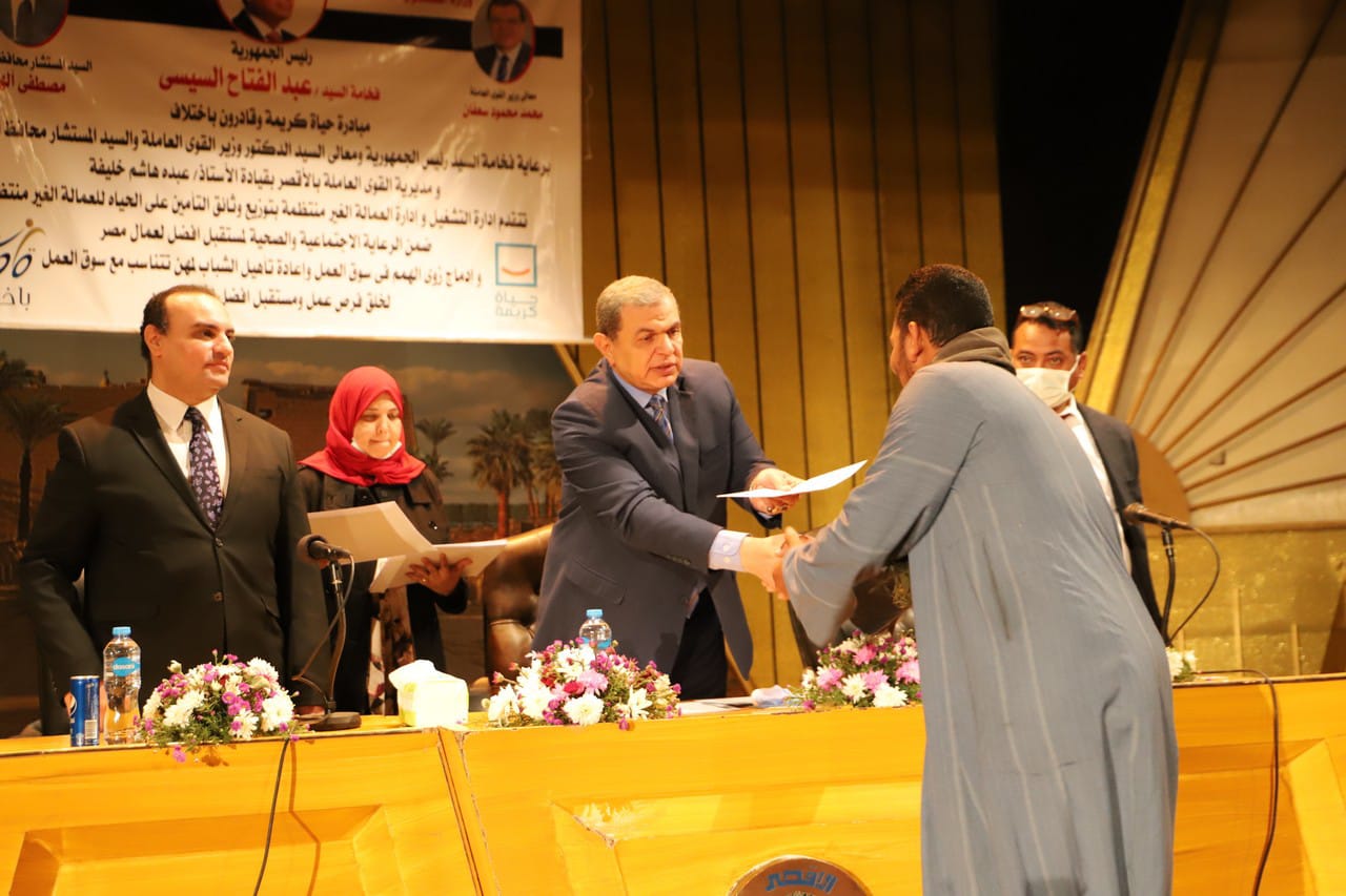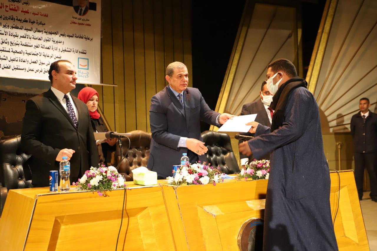 وتابع سعفان: "جئنا إلى محافظة الأقصر تنفيذا لمبادرة "حياة كريمة"، التي أطلقها الرئيس عبد الفتاح السيسي للاهتمام ورعاية ومساندة العمالة غير المنتظمة لرعايتهم اجتماعيا وصحيا وتأمينيا، وتنفيذ خطة كاملة لرعاية هذه الفئة من خلال إنشاء قاعدة بيانات سليمة، معربا عن أمله في الانتهاء من المنظومة المتكاملة لرعاية هذه الفئة خلال العام الجاري بالتعاون مع جميع الوزارات والجهات المعنية بالدولة".