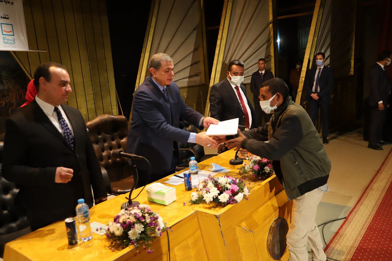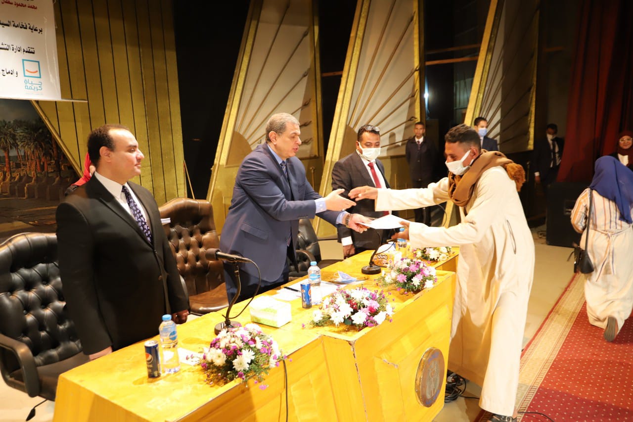 كما سلم الوزير ونائب المحافظ، 50 وثيقة تأمين تكافلي للعمالة غير المنتظمة العاملة فى مشروعات المبادرة الرئاسية الواعدة "حياة كريمة" على أرض المحافظة.