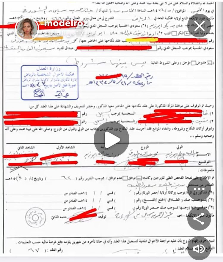 مودل روز تنشر وثيقة تثبت أصولها السعودية وتسخر من طليقها