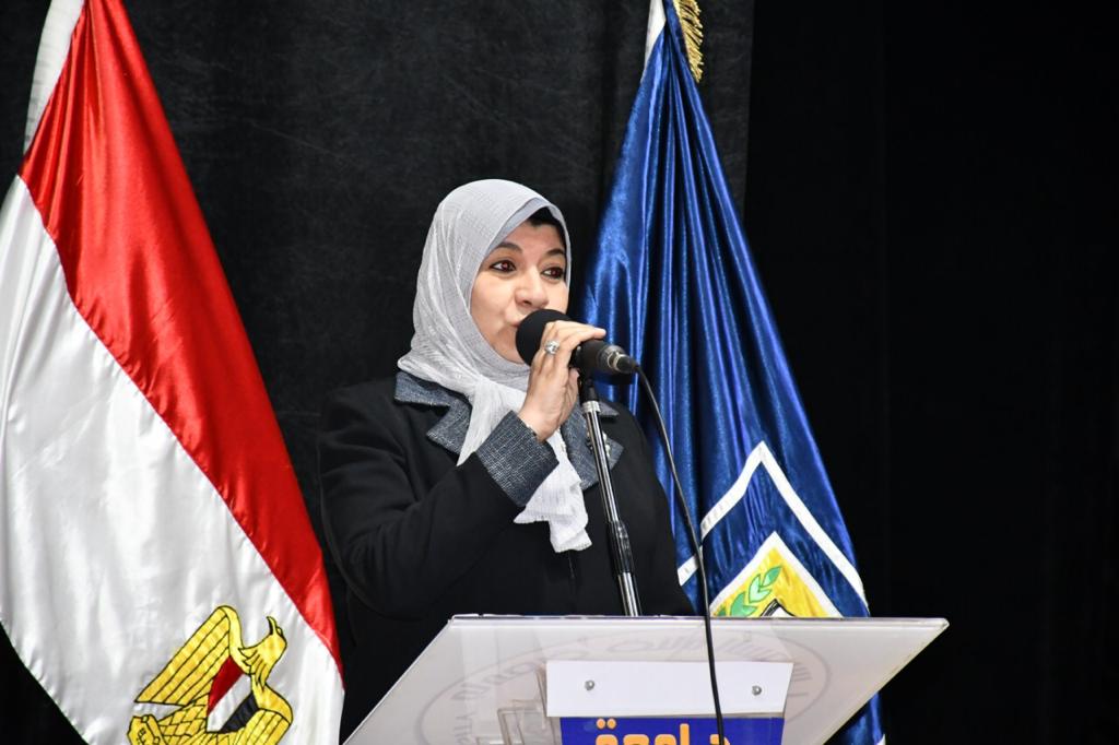 وأشارت نائب رئيس الجامعة إلى أنه من منطلق استضافة مصر للقمة العالمية للمناخ "cop27" لعام ٢٠٢٢، بحضور فخامة الرئيس عبد الفتاح السيسي رئيس الجمهورية والتي سوف تنعقد بمدينة شرم الشيخ الذى سيكون نقطة التحول على صعيد عمل المناخ الدولى ليصبح محور مؤتمرنا هذا العام هو التغير المناخي الفرص والتحديات.