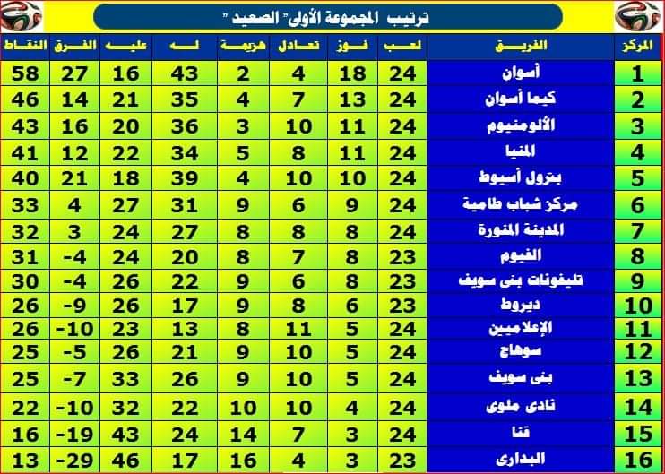 أسفرت نتائج مباريات الجولة الـ 24 لدوري القسم الثاني لكرة القدم بمجموعة الصعيد “المجموعة الأولى”.