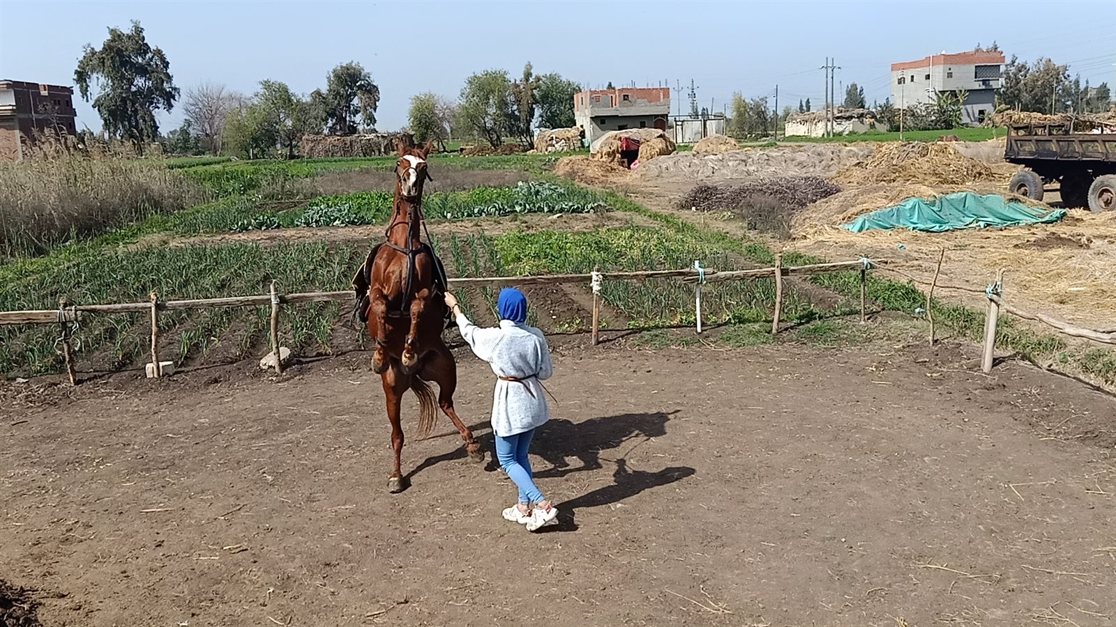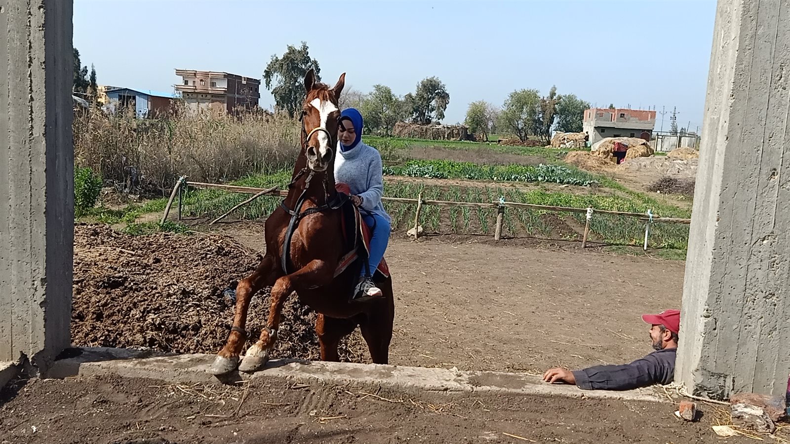 تعلمت هنا أشرف إحدى فتيات عزبة الألف التابعة لمركز شربين بمحافظة الدقهلية، الفروسية وركوب الخيل أبا عن جد واختارت هواية ركوب الخيل، وصار عشق الفروسية وحبها جزءًا لا يتجزأ من شخصيتها التي ورثتها عن والدها الذي يربي الخيول.