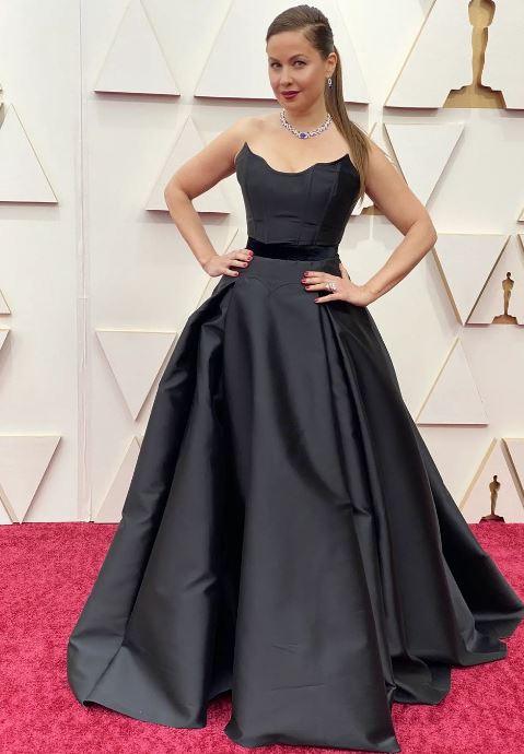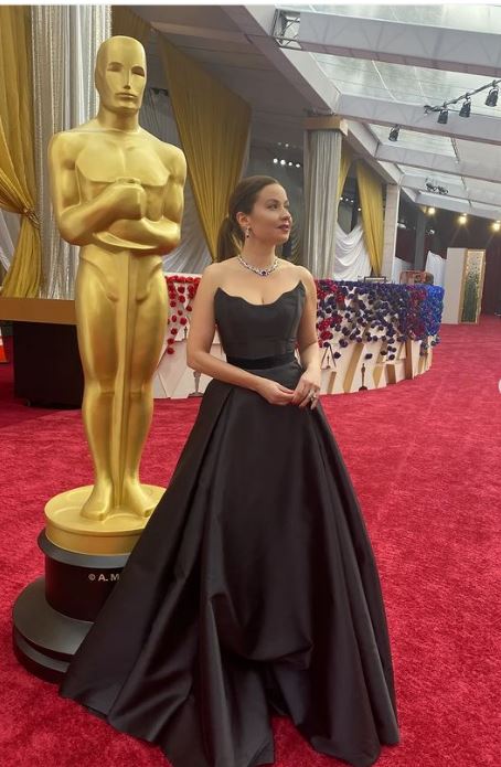 تألقت المذيعة العالمية ريا أبي راشد علي السجادة الحمراء لحفل توزيع جوائز الأوسكار 2022، وارتدت الإعلامية لبنانية الأصل فستان بسيط باللون الأسود، زينته بمجوهرات ماسية.