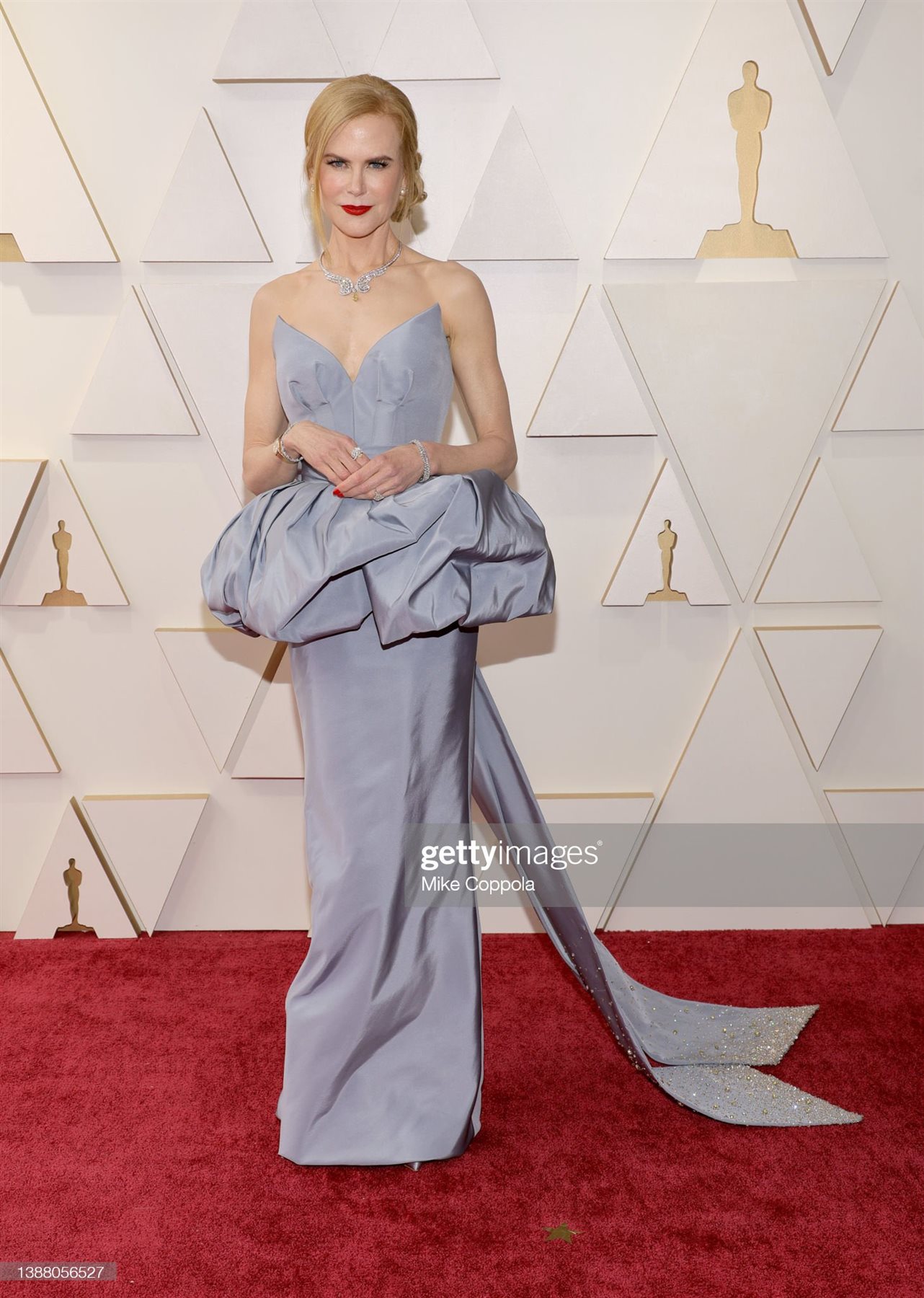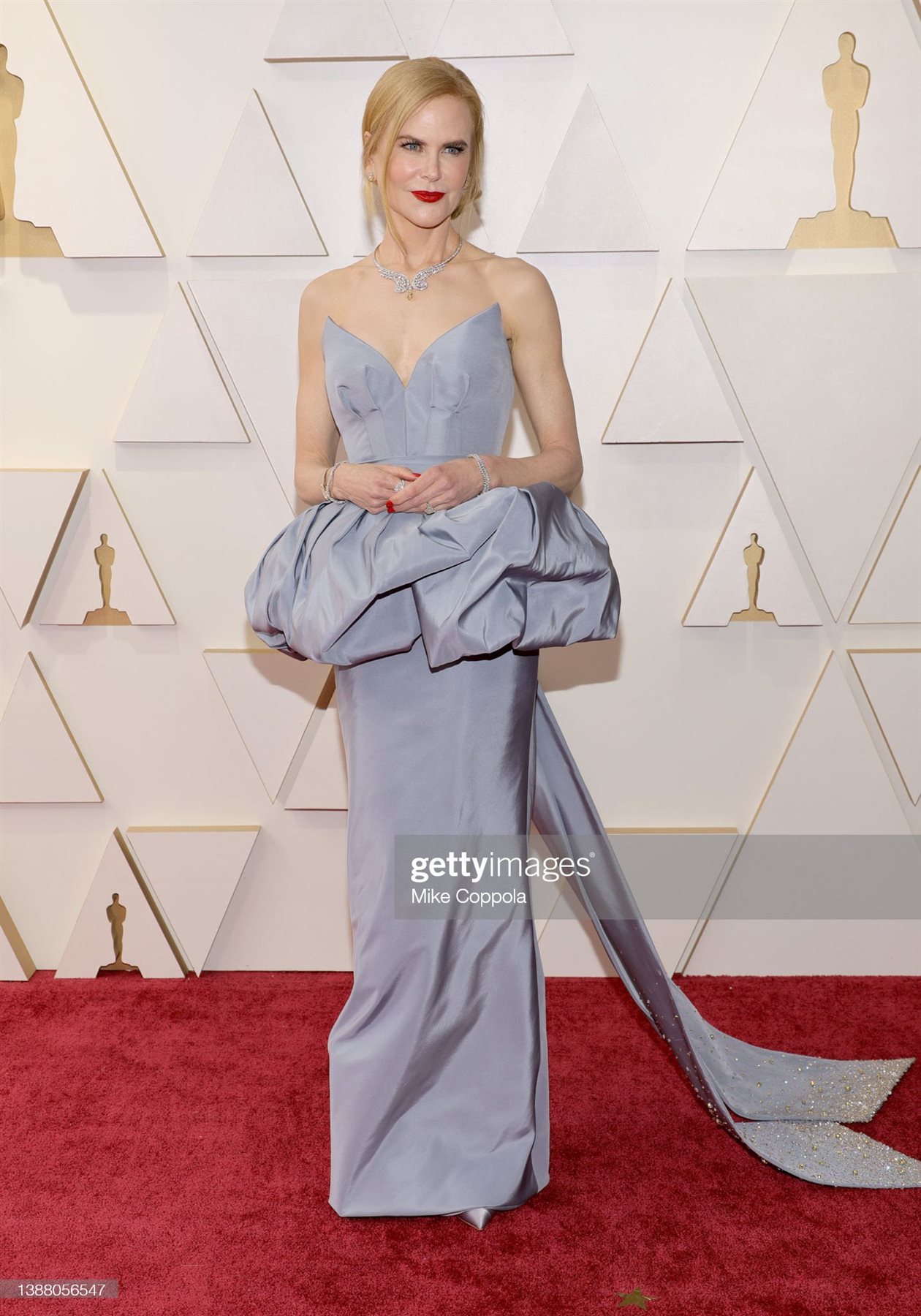 وصلت النجمة الأمريكية الأسترالية الأصل نيكول كيدمان إلي حفل توزيع جوائز الأوسكار 2022، برفقة زوجها مغني الكانتري كيث إربان، وتألقت نيكول عبر ارتدائها فستانا رمادي اللون وعقدا من الألماظ.