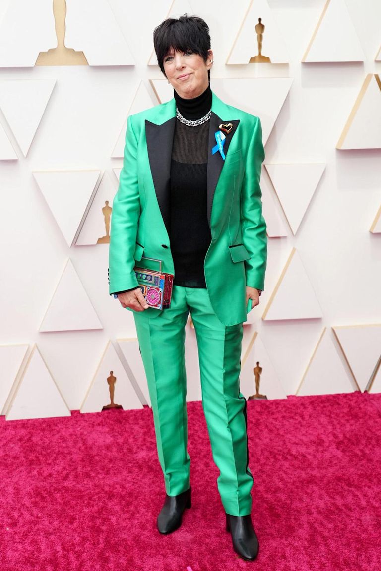 كما ارتدت الملحنة وكاتية الأغاني الأمريكية، ديان وارن، صاحبة الـ65 عامًا، التي تحضر حقل الأوسكار بسترة خضراء جريئة، شريطة زرقاء على طية صدر السترة تضامنًا مع اللاجئين الأوكرانيين.