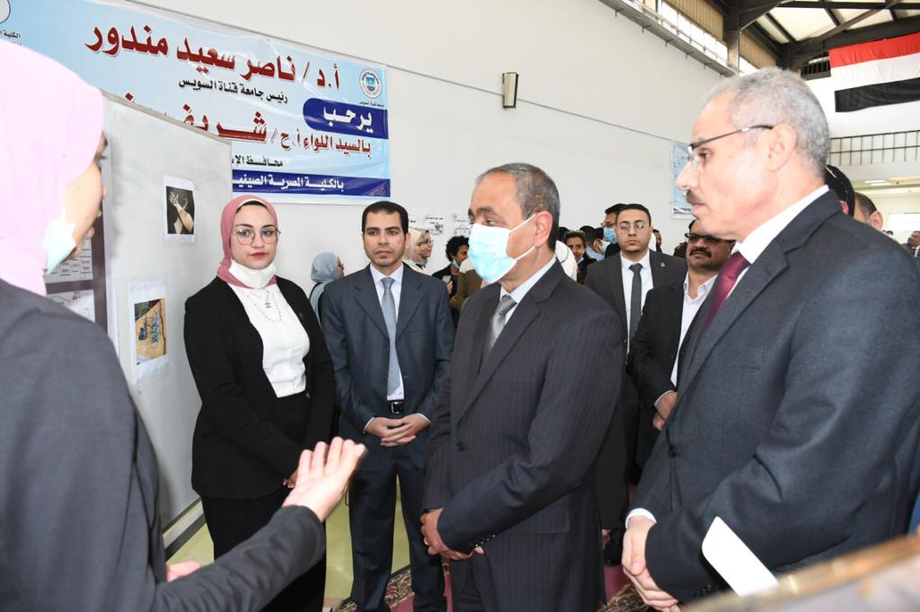 كما توجه رئيس الجامعة ومحافظ الإسماعيلية للكلية المصرية الصينية للتكنولوجيا التطبيقية بمقرها بالجامعة القديمة حيث حرص الدكتور ناصر مندور على عرض إبتكارات وإبداعات طلابنا من المصرية الصينية والهندسة حيث قام الطلاب بشرح إبتكاراتهم لمحافظ الإسماعيلية التى ضمت روبوت لإطفاء الحرائق بنظام الإستشعار عن بعد، مصنع ذكي يضم ثلاث أنظمة " خط إنتاج، نظام دخول أوتومتيكي، نظام أمان " وأيضا خدمات صوتية للمكفوفين.