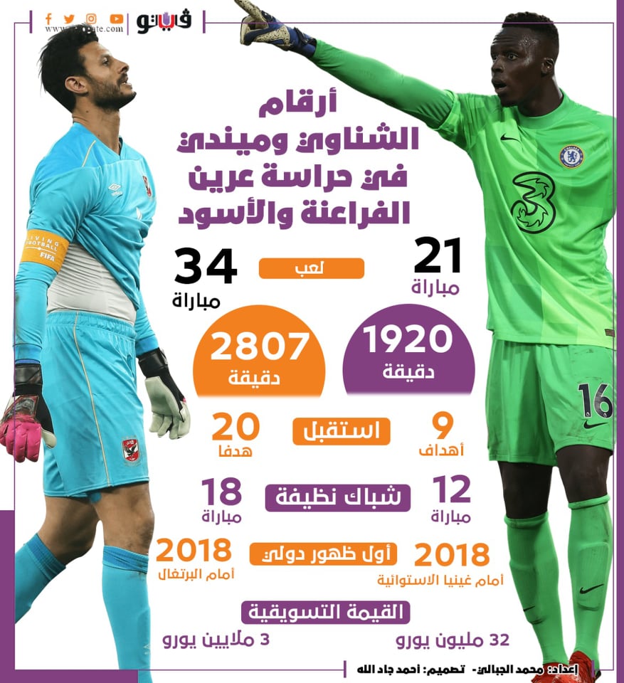 أرقام الشناوي وميندي في حراسة عرين الفراعنة والأسود | إنفوجراف الثلاثاء 29/مارس/2022 - 12:48 م 3/29/2022 12:48:05 PM محمد الشناوي حارس مرمى المنتخب إعداد محمد الجبالي شارك طباعة 18 حجم الخط شارك طباعة الفراعنة محمد الشناوي إدوارد ميندي ميندي القيمة التسويقية