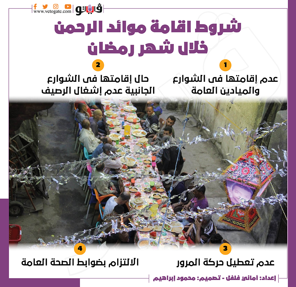 شروط اقامة موائد الرحمن خلال شهر رمضان| انفوجراف الثلاثاء 29/مارس/2022 - 11:06 م 3/29/2022 11:06:52 PM موائد الرحمن أماني فلفل شارك طباعة 18 حجم الخط شارك طباعة شهر رمضان موائد الرحمن اقامة موائد الرحمن