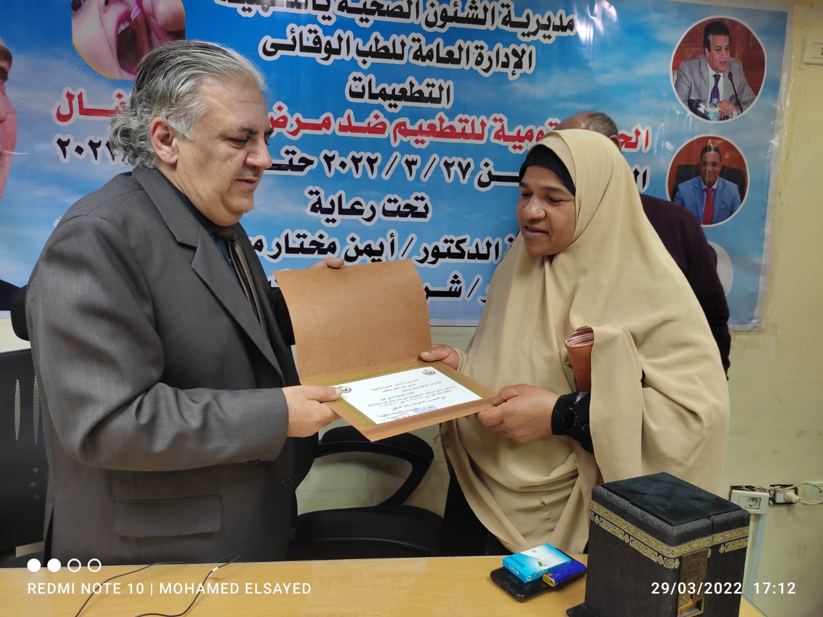أشاد الدكتور شريف مكين وكيل وزارة الصحة بالدقهلية بدور المساهمين في حملة شلل الأطفال ويكرم إحدى المتميزات بإدارة بني عبيد الصحية لتحقيقها المستهدف، وذلك أثناء اجتماعه بمشرفي حملة التطعيم ضد شلل الأطفال.