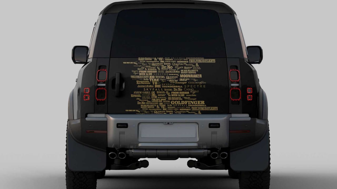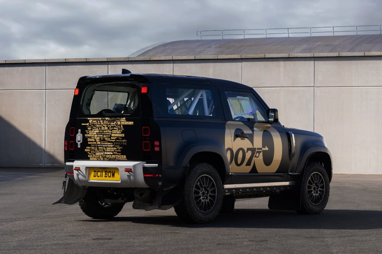 ديفندر 90 المصممة خصيصًا بهيكل أسود تحمل أسماء جميع أفلام جيمس بوند باللون الذهبي على غطاء المحرك وباب صندوق الأمتعة، يحتوي السقف والجوانب على رقم 60 كبير باللون الذهبي، مع شعار 007 الكلاسيكي الذي تم دمجه.