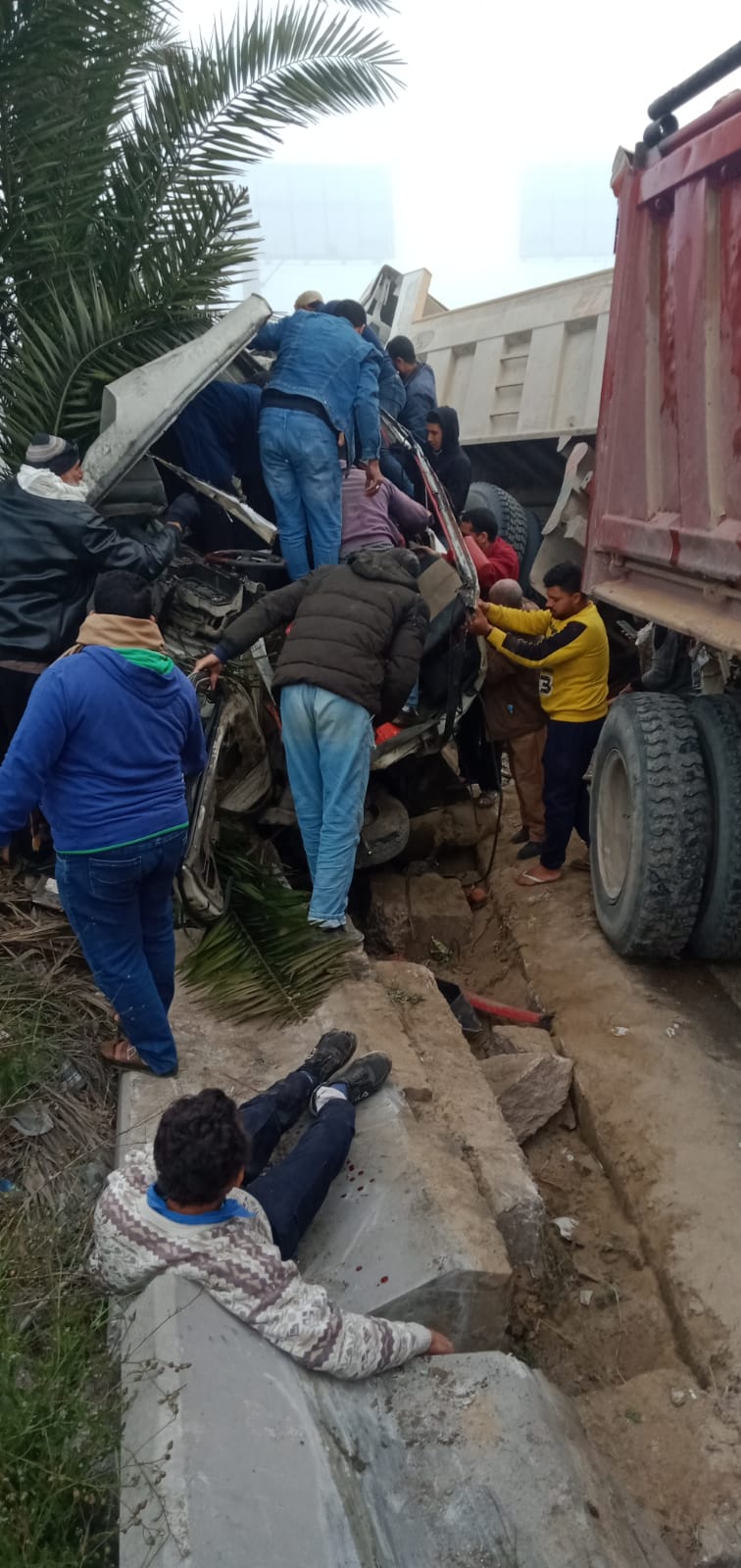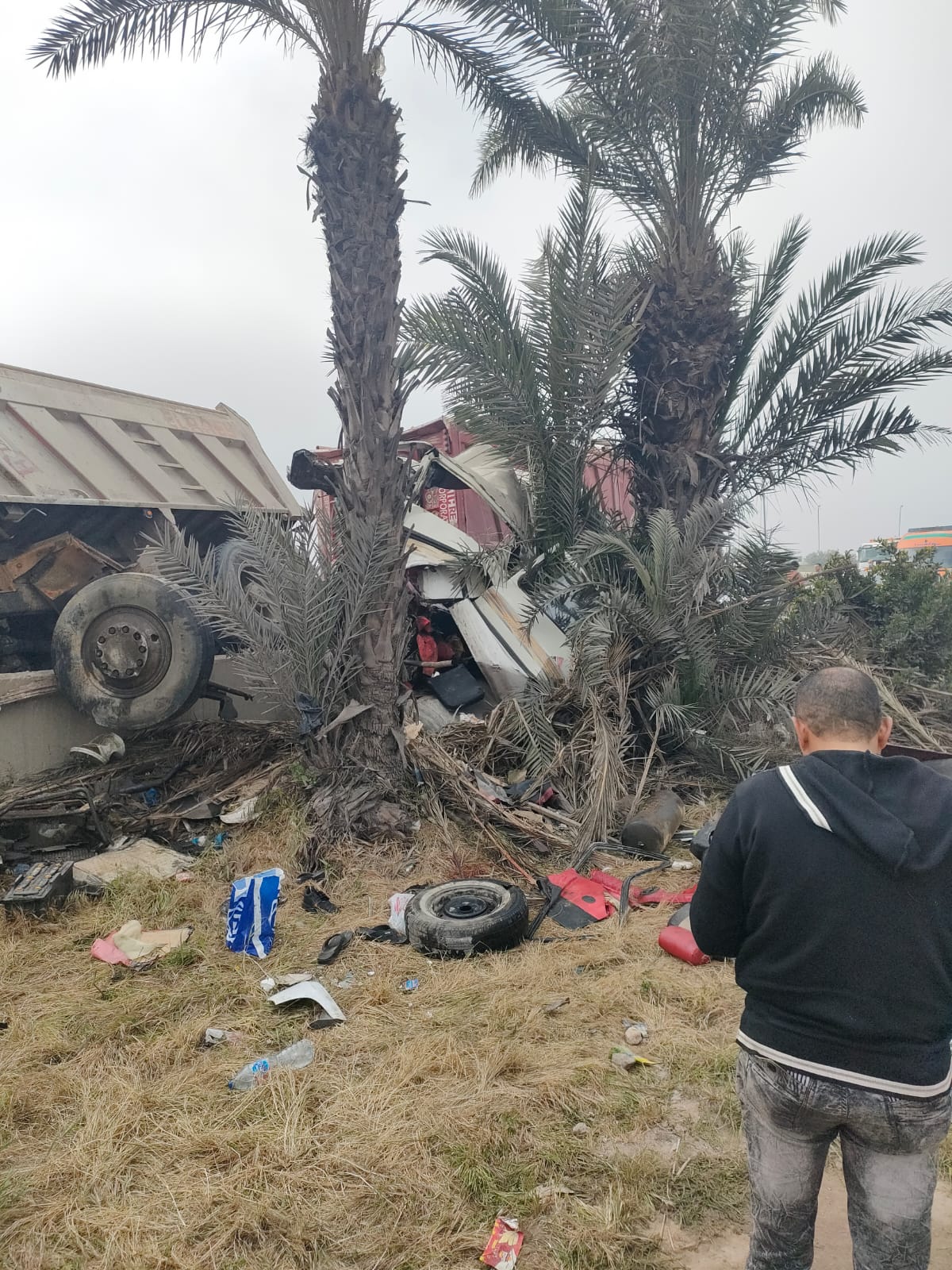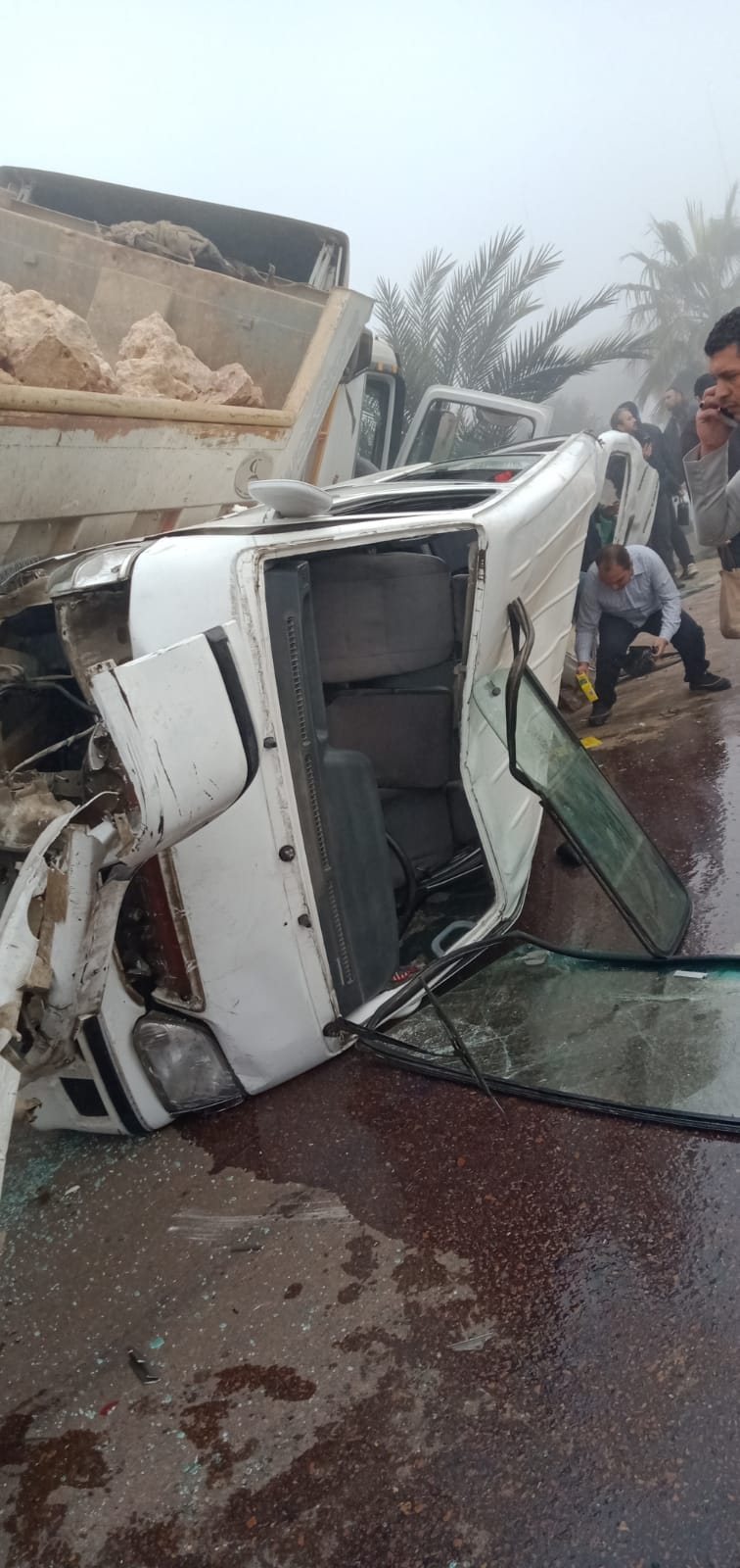 وانتقلت الشرطة والحماية المدنية والإسعاف إلى موقع الحادث، فيما تقوم اللوادر برفع الحطام لتسيير حركة المرور.