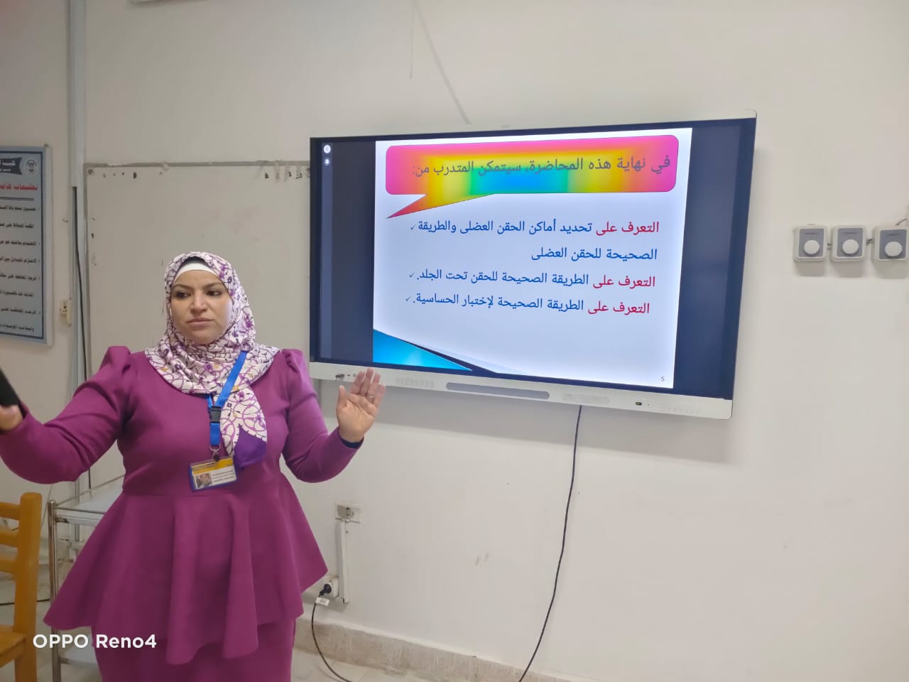 و من جانبها شرحت الدكتورة هناء آمين منسق عام المبادرة، طريقة الحقن الصحيحة المختلفة والتى منها "الحقن العضلى وتحت الجلد وأختبار الحساسية" وكثفت تدريبها للحضور على كيفية إعطاء الحقن العضلى عمليا وأتباع الخطوات اللازمة قبل أعطاء الدواء للمريض وتحديد مكان الحقن وموانع استخدام تلك الوسيلة العلاجية والتنبيه على المتدربين بضرورة عمل أختبار الحساسية للمريض قبل حقنه بأى دواء.