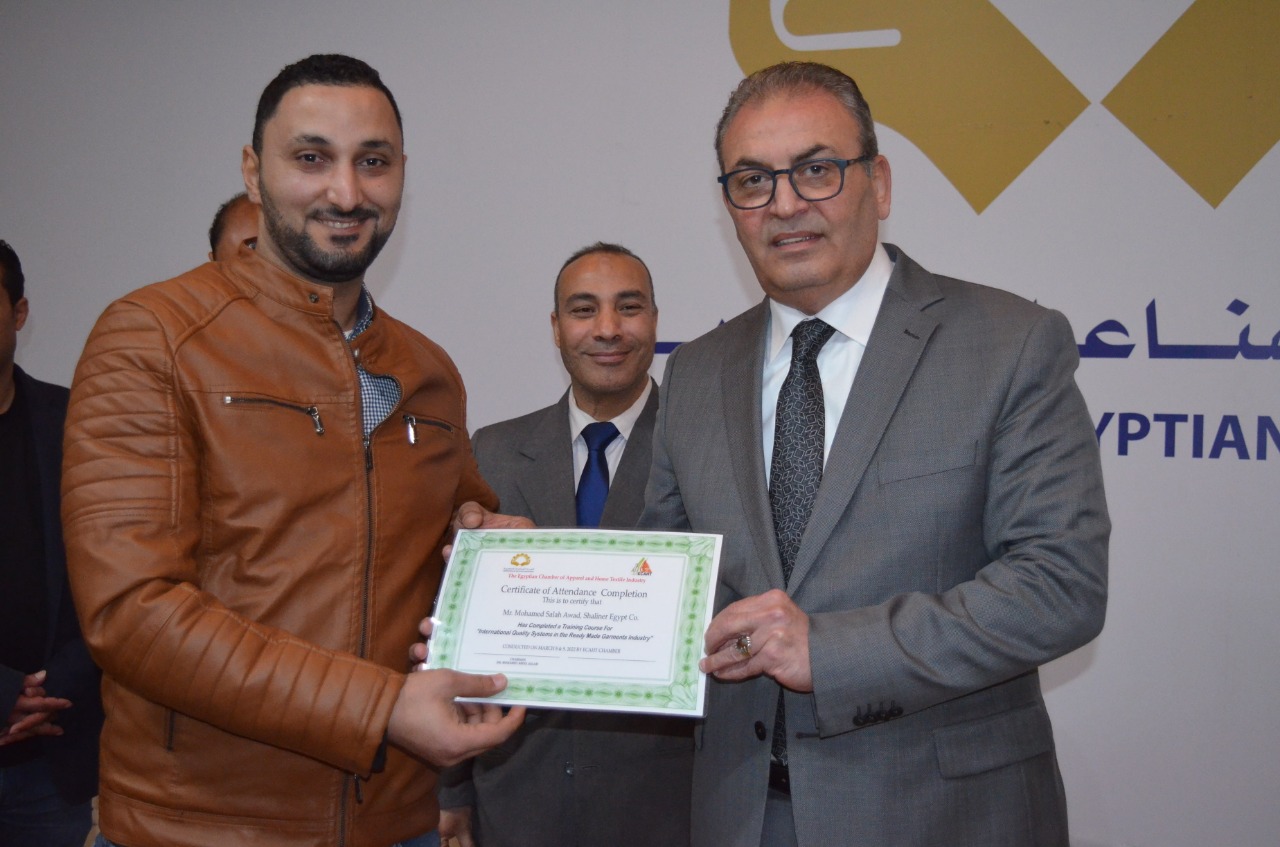 قام الدكتور محمد عبد السلام رئيس مجلس إدارة غرفة صناعة الملابس الجاهزة والمفروشات باتحاد الصناعات بتوزيع شهادات التقدير على عدد من العناصر المتميزة في الدورات التدريبية التي نظمتها الغرفة وشملت مجالات الإنتاج والجودة والتأهيل للتصدير والموارد البشرية واللوجستيك ومهارات التصدير والافراج الجمركي والتسجيل المسبق للشاحنات ومتابعة خطوط السير للملاحة وقد شارك فيها 148 متدربا من 50 مصنع ملابس في محافظات القاهرة الكبرى والإسكندرية ومن المخطط استهداف تنظيم دورات لمصانع القطاع في مدن القناة والمحلة الكبرى خلال الشهور القادمة.