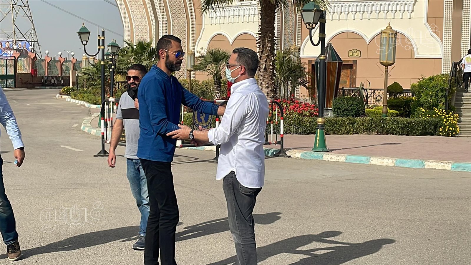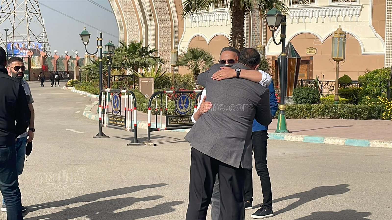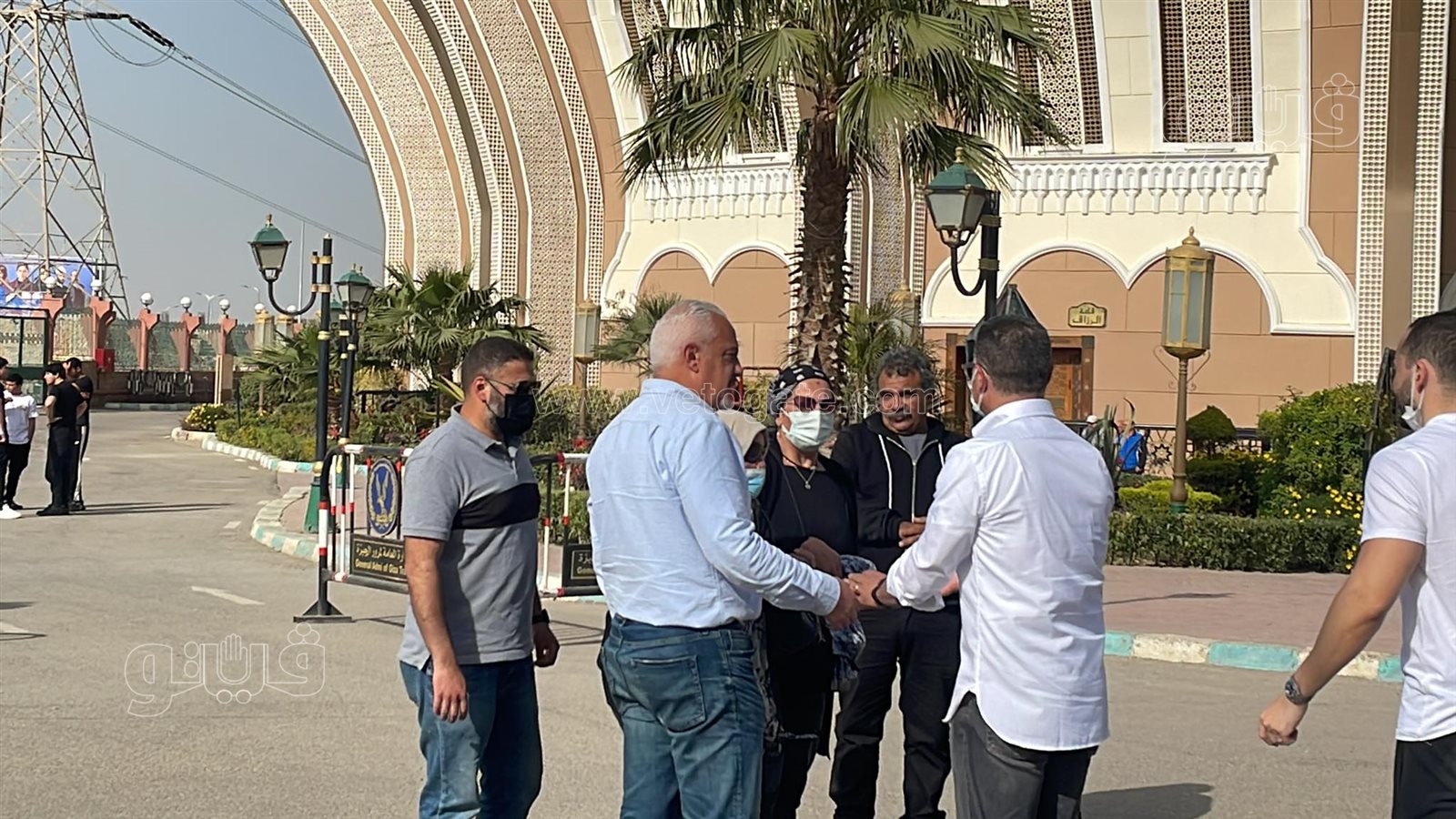 شريف عامر يصل مسجد الشرطة بالشيخ زايد لتشييع جنازة والدته | فيديو وصور
