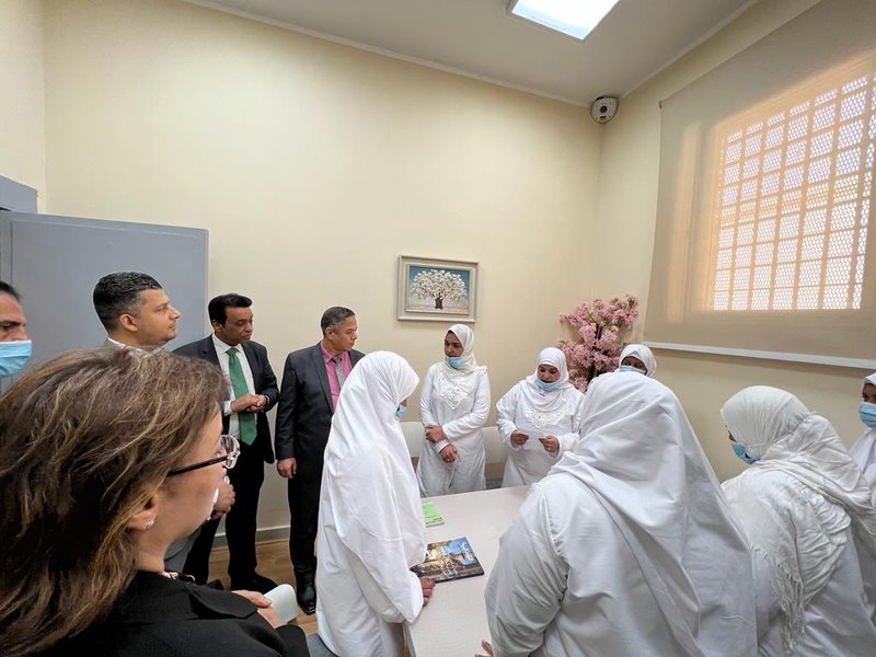 كما تفقدوا معرض المشغولات اليدوية والمشغل والخياطة والتطريز بالإضافة إلى عدد من مرافق المركز من بينها (أماكن الشعائر الدينية – المكتبة – الفصول التعليمية – مبنى التأهيل والهوايات).