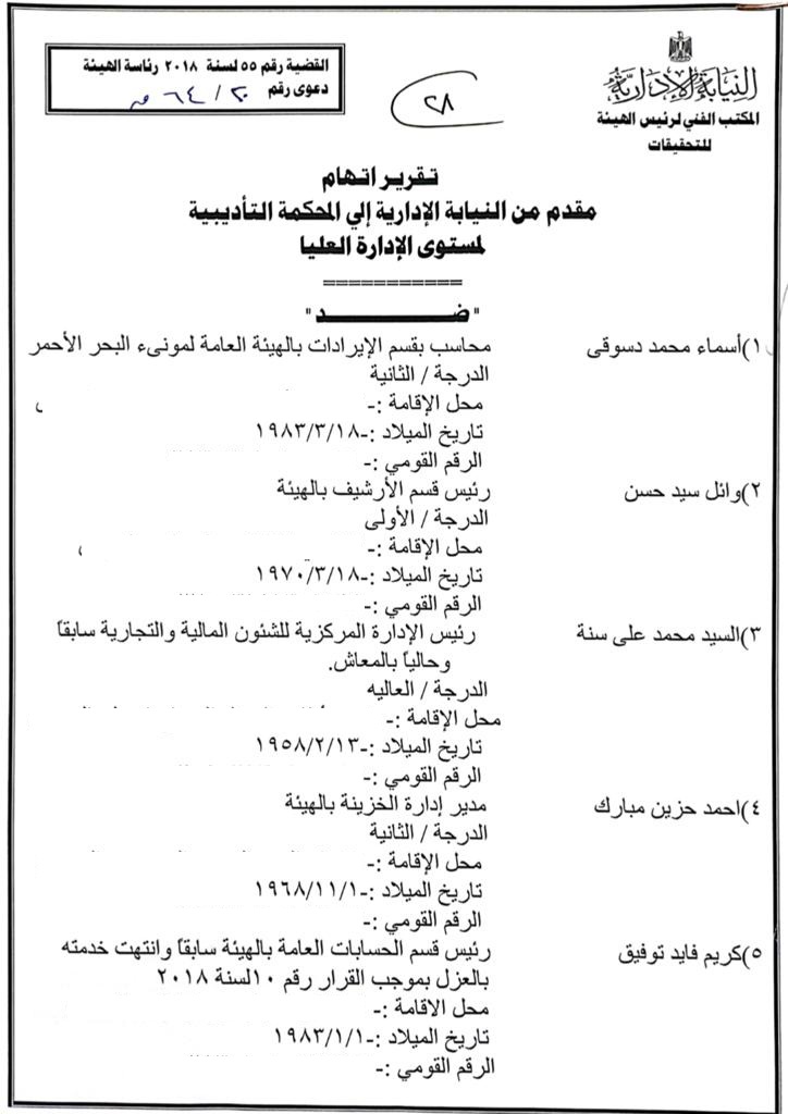 قررت النيابة الإدارية إحالة رئيس الإدارة المركزية للشئون المالية والتجارية بالهيئة العامة لموانئ البحر الأحمر و4 مسؤولين آخرين من مساعديه للمحاكمة العاجلة بعد ثبوت ارتكابهم مخالفات مالية وإدارية جسيمة ترتب عليها تمكين المتهم الأخير من اختلاس أموال جهة عملهم بالعملة الأجنبية.