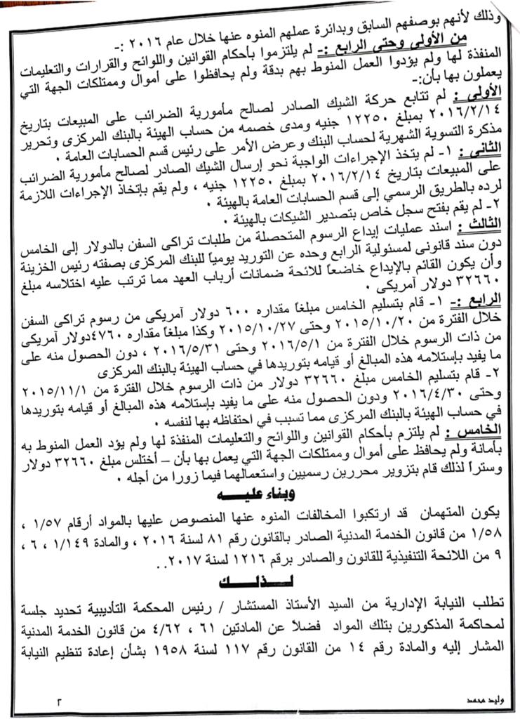 وتبين من أوراق القضية أن وائل سيد حسن، رئيس قسم الأرشيف بالهيئة لم يتخذ الإجراءات الواجبة نحو إرسال الشيك الصادر لصالح مأمورية الضرائب لرده بالطريق الرسمي إلى قسم الحسابات العامة بالهيئة