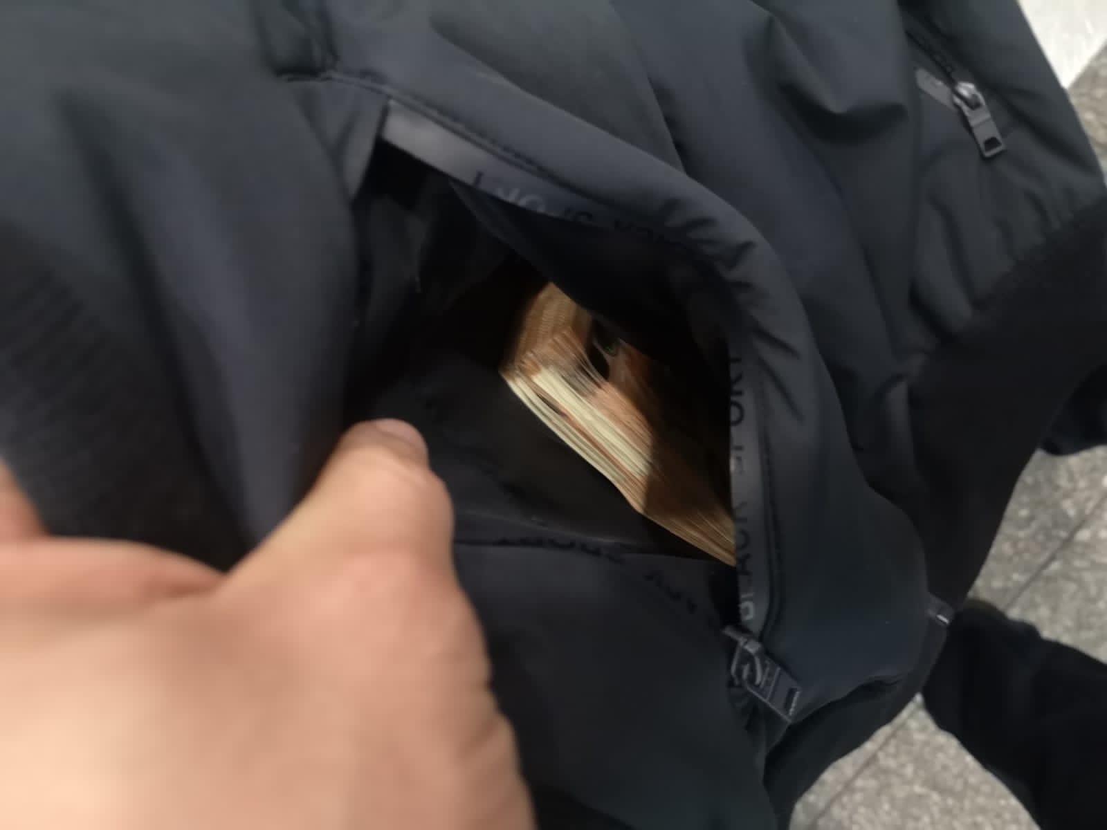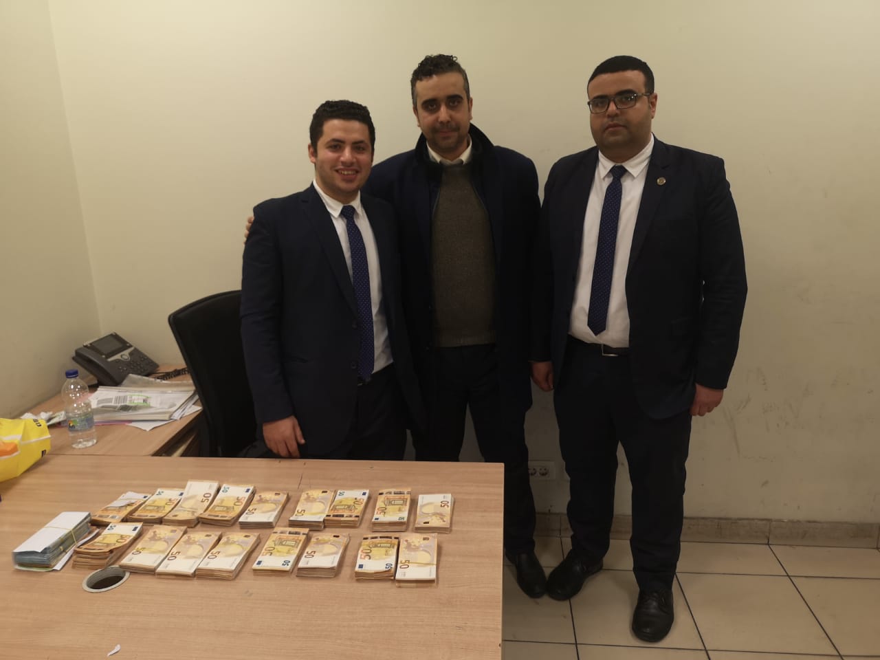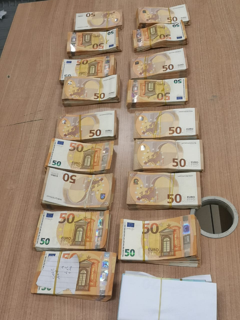 وقام أحمد محمد فوزي مدير الحركة المشرف على صالة الوصول بمبنى الركاب رقم ٢ بتكليف سامي نبيل سامي مأمور الجمرك بتفتيش حقائب الراكب يدويا مما أسفر عن ضبط كمية من النقد الأجنبي داخل علب أغذية جافة وبين طيات الملابس بلغت حوالي ٩٣ ألف يورو.