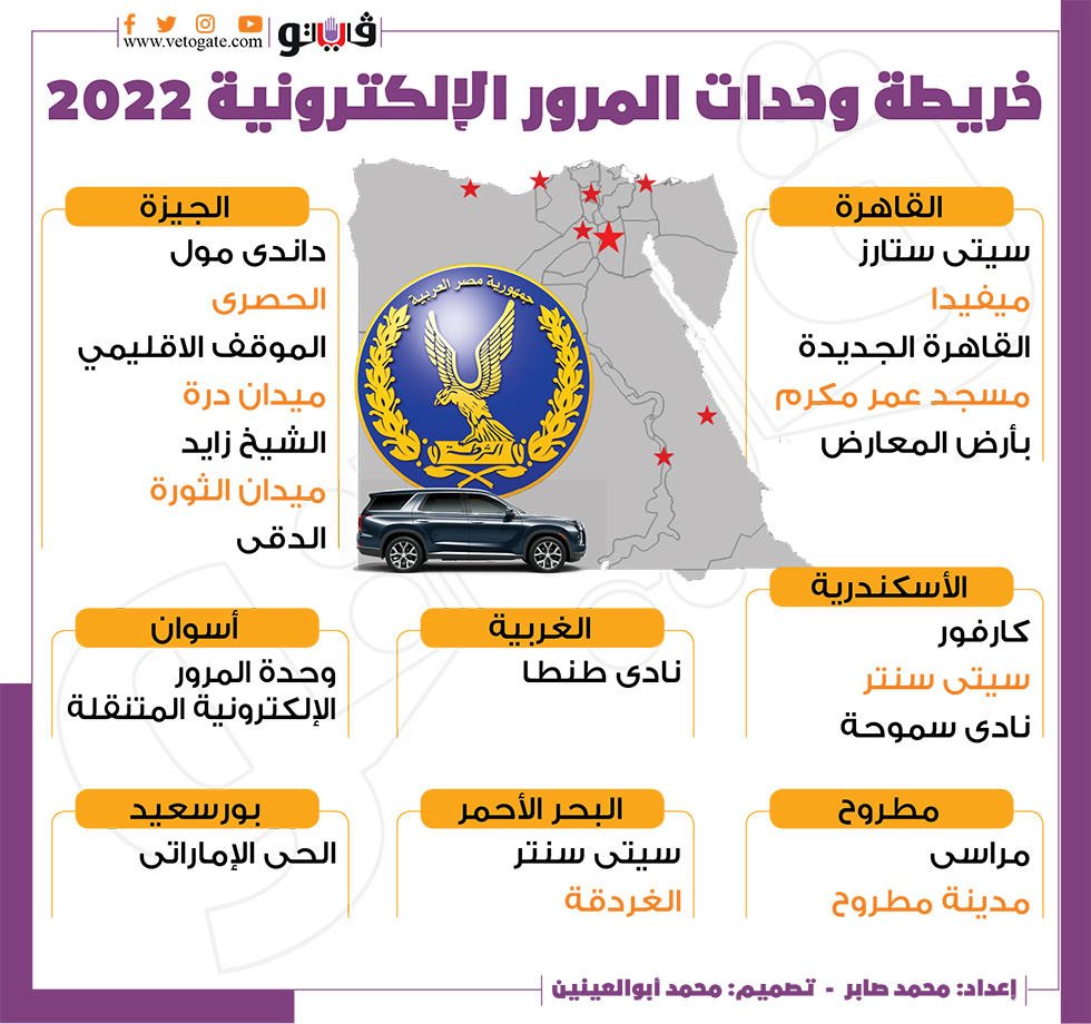 خريطة وحدات المرور الإلكترونية 2022|أنفوجراف السبت 02/أبريل/2022 - 04:30 م 4/2/2022 4:30:38 PM وحدة مرور إلكترونية محمد صابر شارك طباعة 18 حجم الخط شارك طباعة البحر الأحمر مطروح نادي سموحة مسجد عمر مكرم نادي طنطا سيتي ستارز الشيخ زايد مول سيتي ستارز وحدات المرور الالكترونية