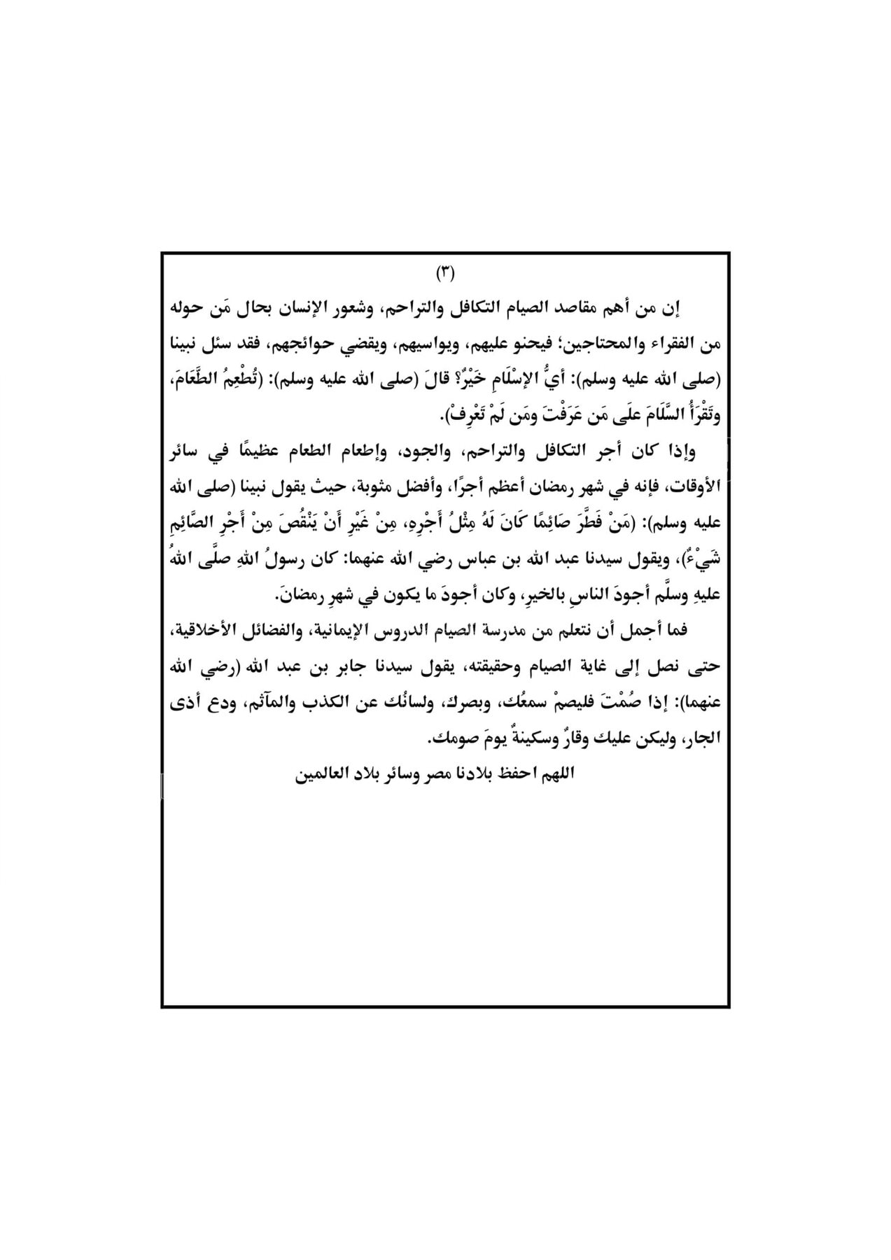 نشرت وزارة الأوقاف موضوع خطبة الجمعة القادمة 7 رمضان 1443هـ الموافق 8 أبريل 2022م تحت عنوان: "الجوانب الإيمانية والأخلاقية في الصيام".
