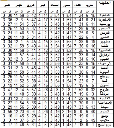 وجاءت مواعيد الأذان اليوم في باقي مدن الجمهورية كالتالي: