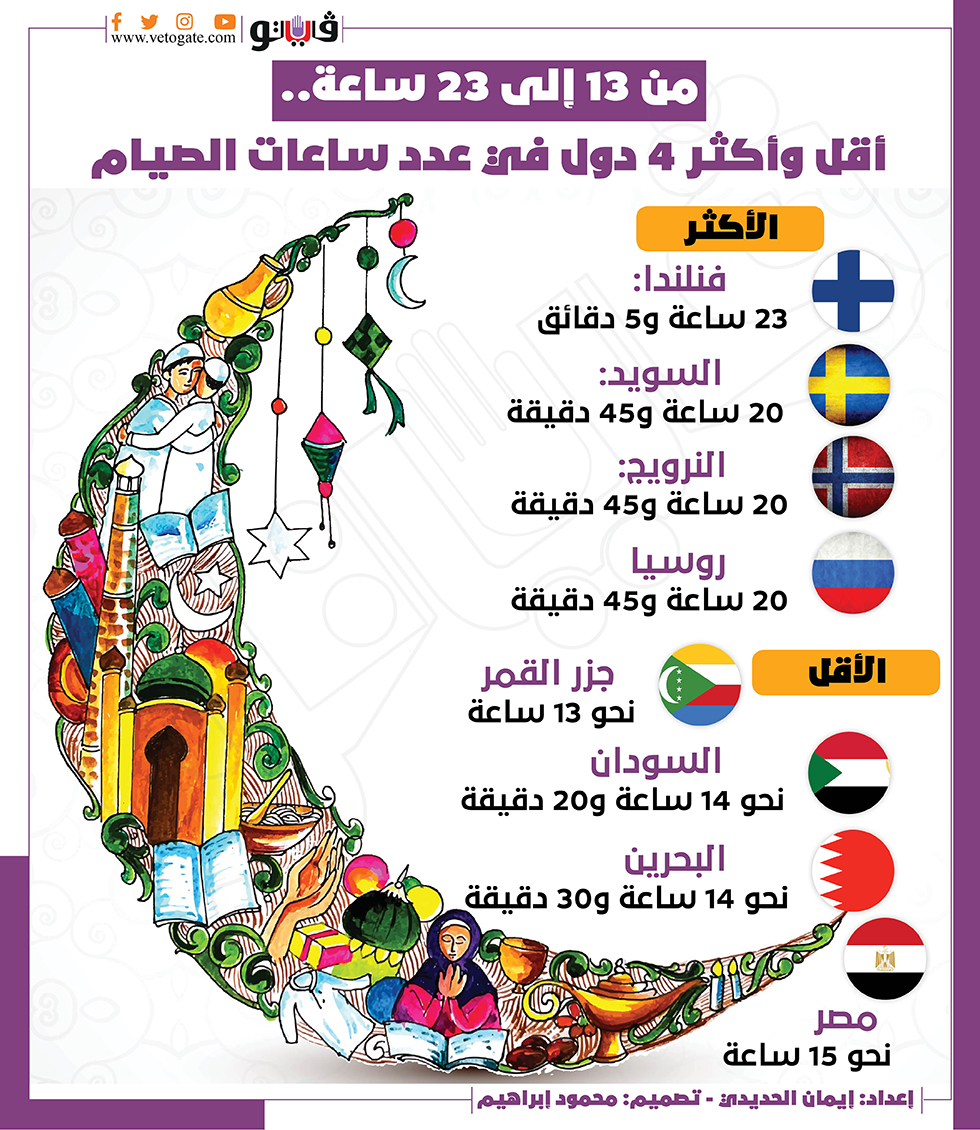 من 13 إلى 23 ساعة.. أقل وأكثر 4 دول في عدد ساعات الصيام | إنفوجراف السبت 02/أبريل/2022 - 11:57 م 4/2/2022 11:57:31 PM فانوس رمضان إيمان الحديدى شارك طباعة 18 حجم الخط شارك طباعة العراق اليمن السويد فلسطين روسيا الجزائر لبنان سوريا