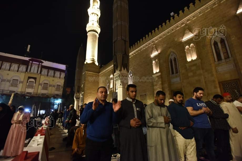 استقبل مسجد الحسين بالقاهرة، المصلين لإقامة صلاة تراويح أول أيام شهر رمضان المبارك عقب افتتاحه بعد عملية التطوير.