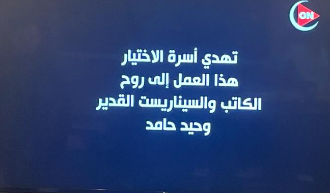 وجاء في بداية العمل لافتة خاصة من أبطال وصُناع العمل وذلك بإهداء العمل لروح الكاتب الراحل وحيد حامد، قائلين في لافتة: تهدي أسرة الاختيار هذا العمل إلى روح الكاتب والسيناريست القدير وحيد حامد.