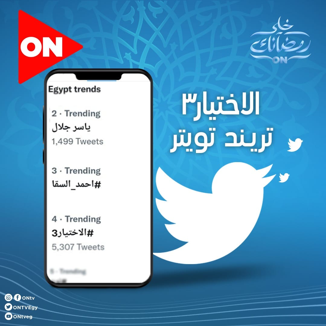 انطلقت قبل قليل أولى حلقات الجزء الثالث من المسلسل الوطني الشهير الاختيار.. الذي يلعب بطولته عدد كبير من نجوم الفن أبرزهم، الفنان أحمد عز وكريم عبد العزيز، حيث يعرض العمل عبر فضائية ON.. واستطاع المسلسل عقب دقائق قليلة أن يحتل الصدارة بمؤشرات بحث جوجل عربيًا ومختلف تريندات السوشيال ميديا وبالأخص موقع التدوينات القصيرة “تويتر”.
