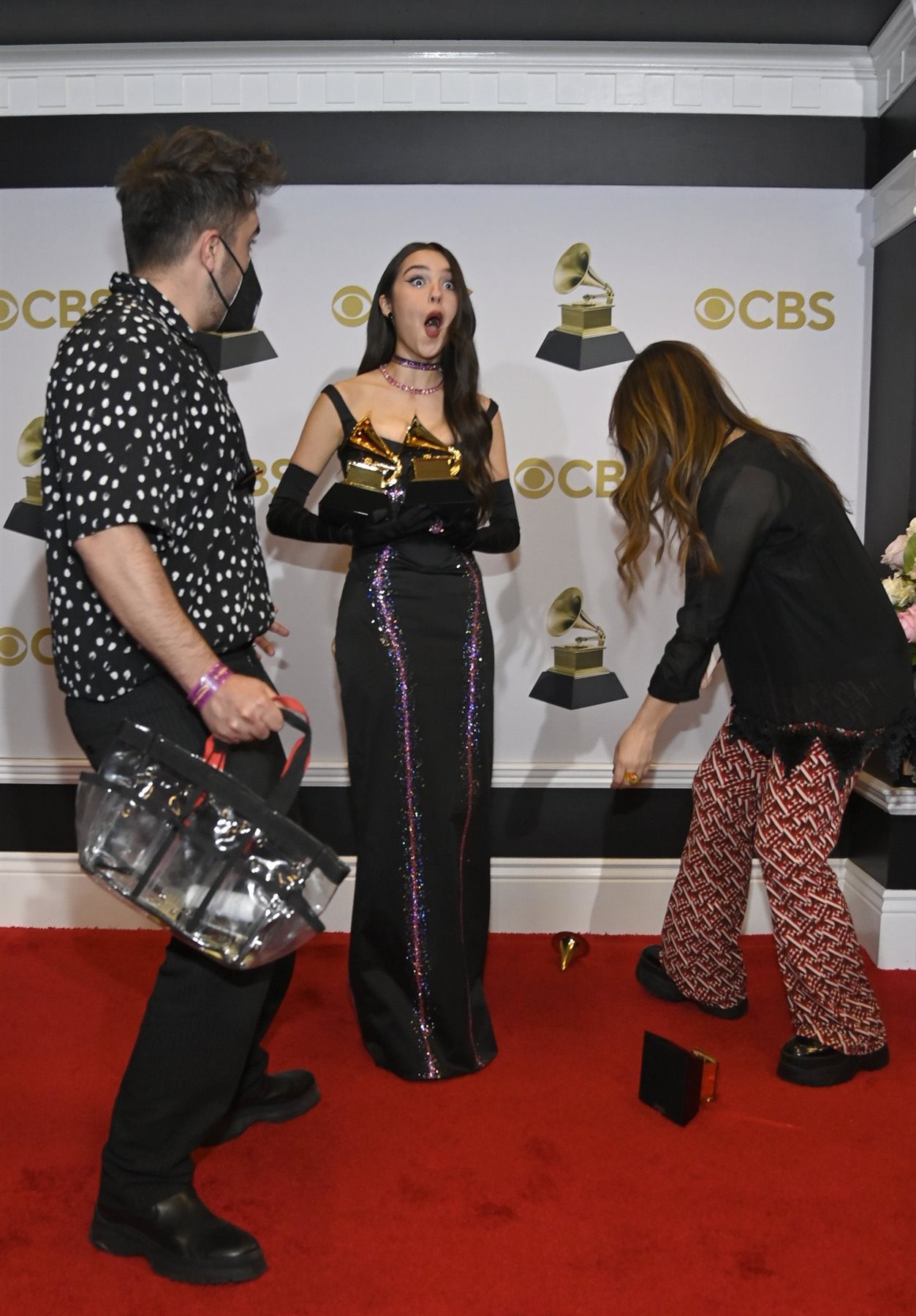 تعرضت المغنية الشابة أوليفيا رودريجو لموقف صعب بعد استلامها جوائز الجرامي التي فازت بها خلال الحفل، حيث سقطة أحدي الجوائز من بين يديها علي الارض لتتحطم، وفازت أوليفيا بعدة جوائز من ضمنها أفضل مطربة صاعدة وأفضل أداب بوي منفرد.