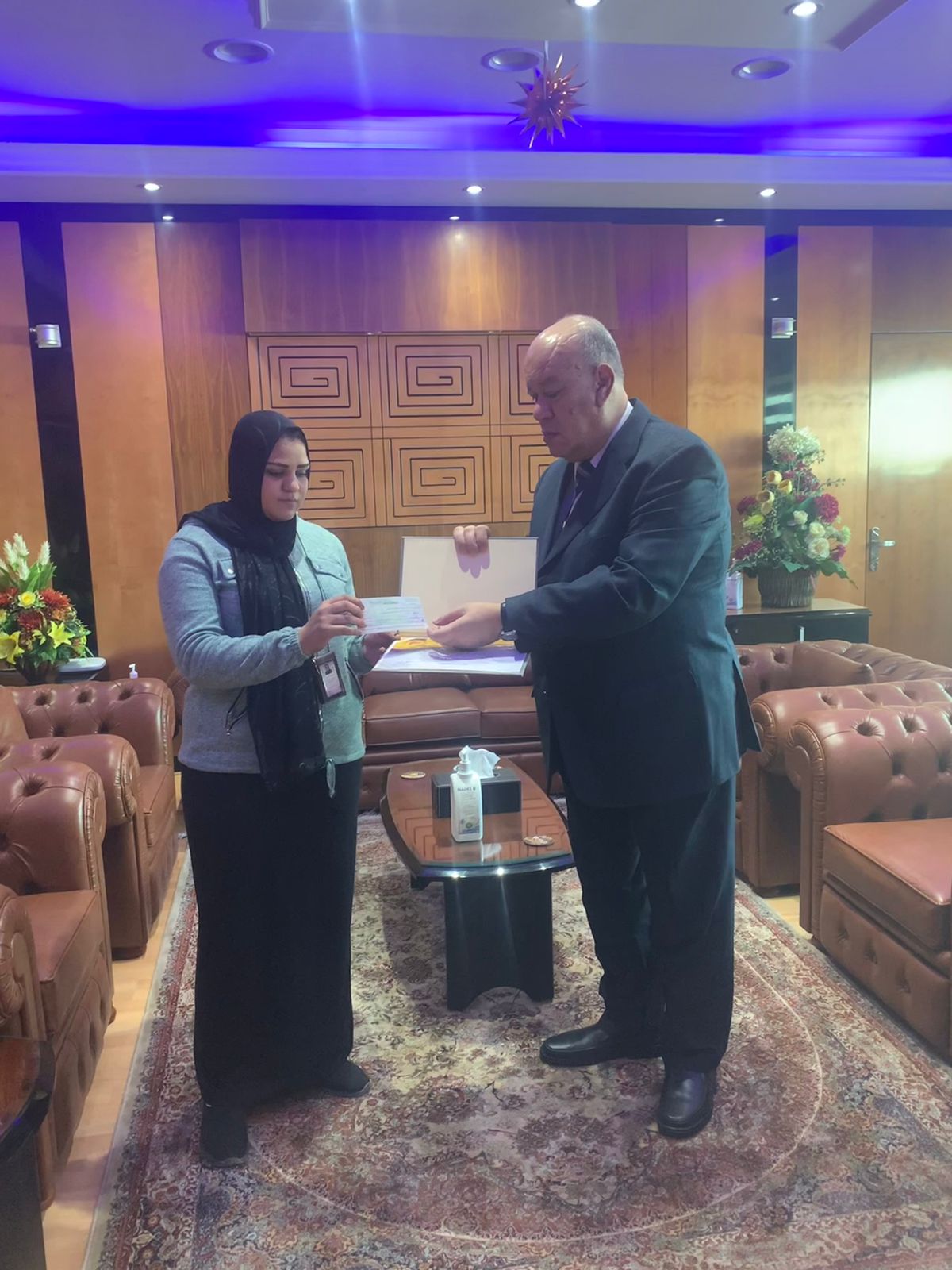 وحرص المحاسب مجدى اسحق علي تكريم العاملة بشهادة تقدير ومكافأة مالية وأثنى على أمانتها وشكرها على حسن صنيعها كمثال يحتذى به بين العاملين، وذلك إنطلاقا من أهمية العنصر البشرى وضرورة تحفيز ذوى الأمانة والخلق الرفيع.