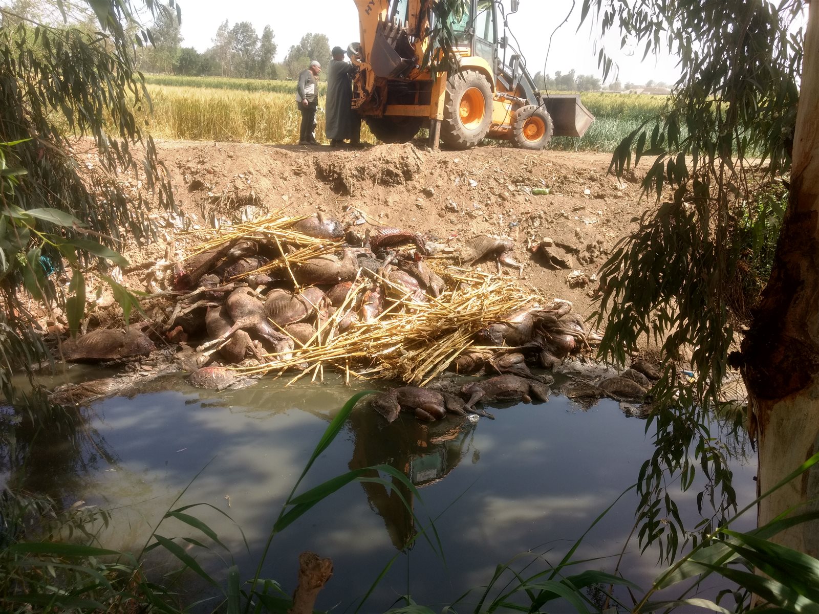 وقامت هندسة صرف طنطا التابعة للإدارة العامة لصرف الغربية برئاسة المهندسة نورا رشاد بإعدام 22 حمارًا وجدوا نافقين ومسلوخين من جلودها علي جسر مصرف امتداد شوبر والتى تم ضبطها.