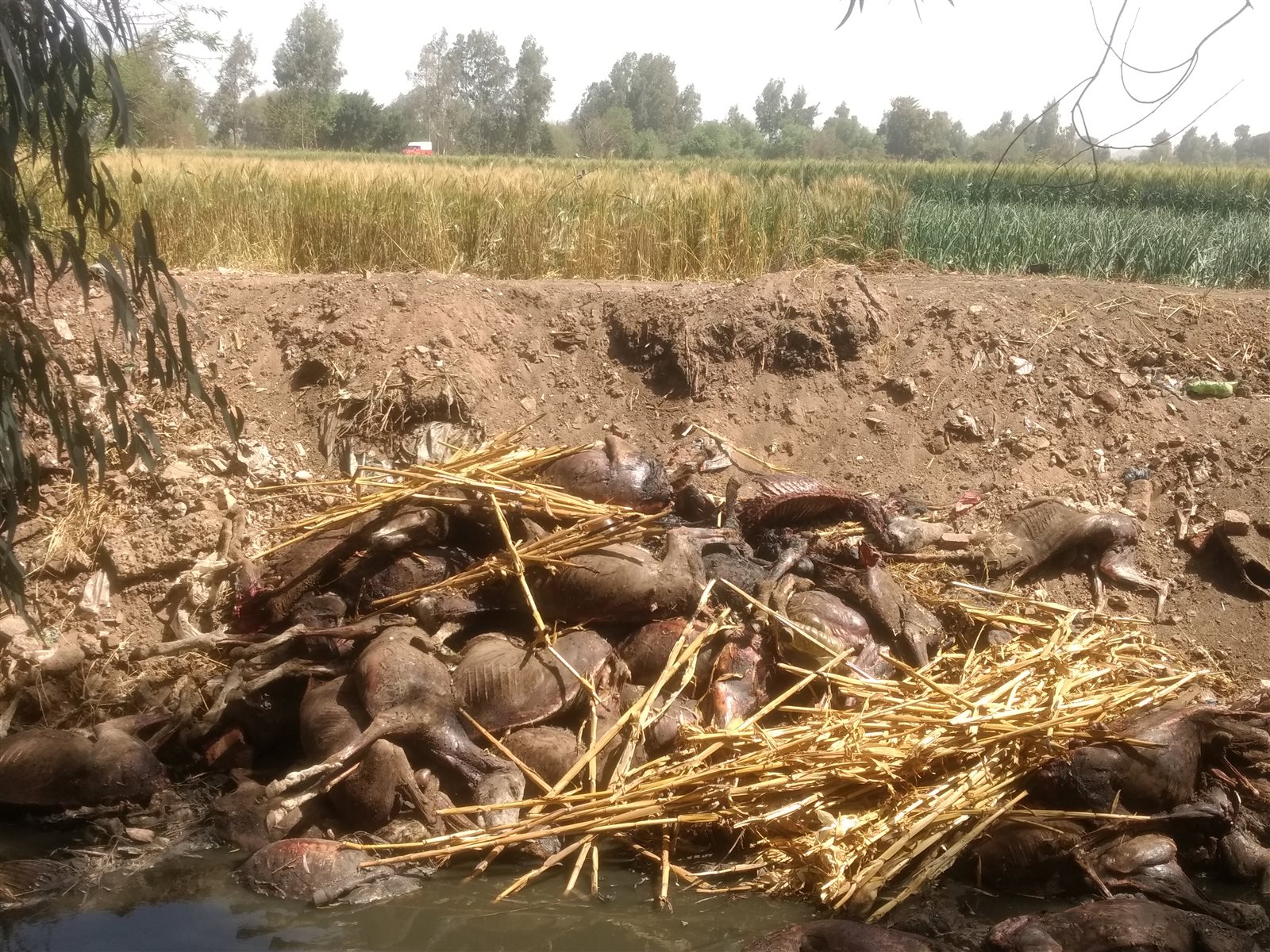عثر فلاحون بمحافظة الغربية على عدد من الحمير المذبوحة بجوار مصرف امتداد شوبر في المنطقة الواقعة بين قريتي محلة مرحوم وكفر الحما التابعتين لمركز طنطا ما أثار حالة من الفزع بين الأهالي مطالبين بالتحقيق في الواقعة وإلقاء القبض على من قام بإلقاء الحمير في المصرف.