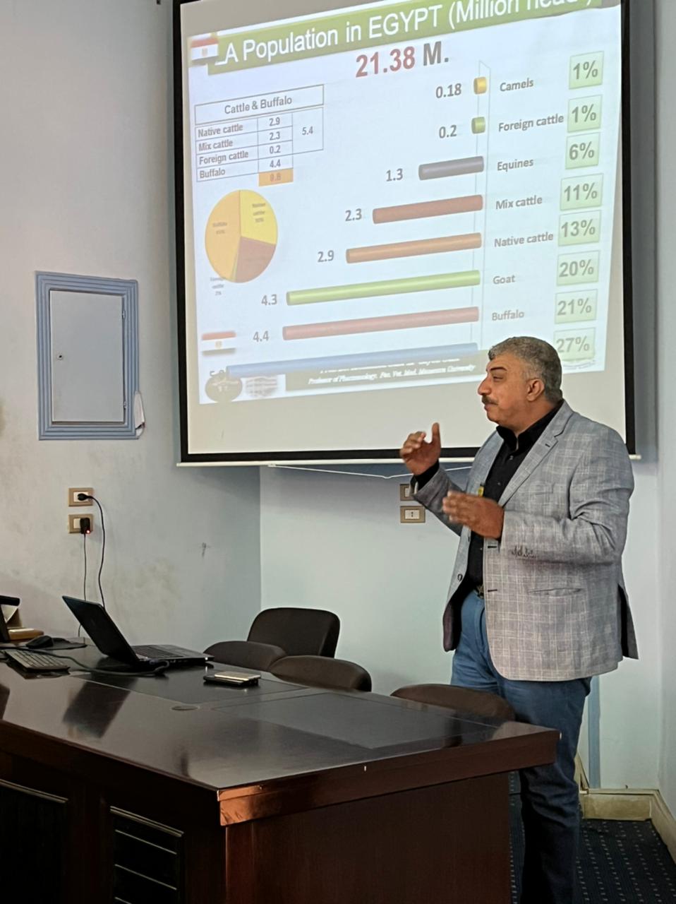 وقدم الدكتور محمد جبر السيد جبر رؤية عامة عن الثروة الحيوانية في مصر وكذلك سوق الدواء الذي يخدم هذا المجال وقد ناقش تأثير التغيرات المناخية السلبية علي الثروة الحيوانية والأغذية ذات الأصل الحيواني، حيث أكد أن معظم المشاكل المرضية الناجمة عن ذلك تؤدي إلى خسائر اقتصادية هائلة وتشكل تحديا إضافيا علي الأمن الغذائي.