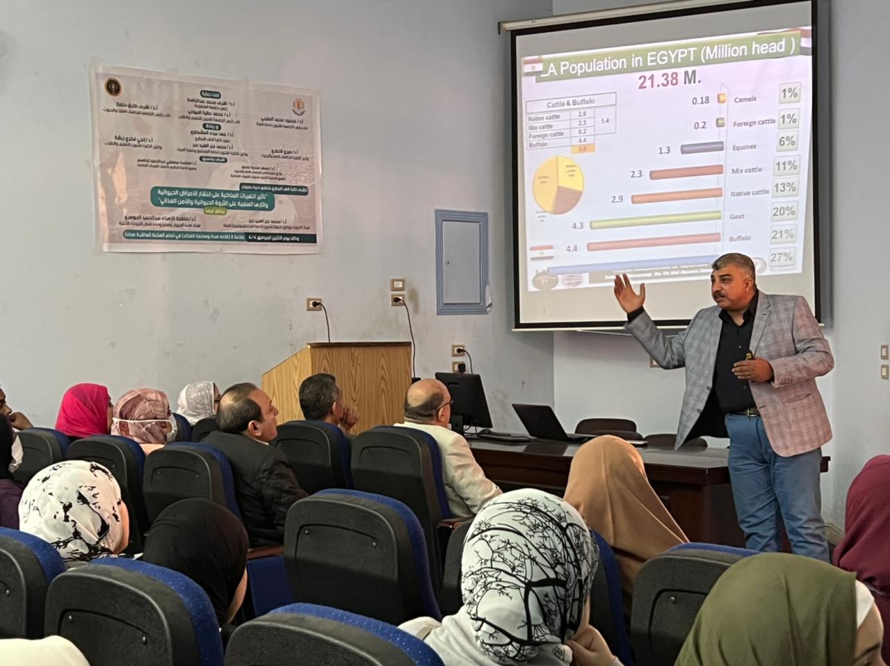 و حاضر فيها كل من الدكتور محمد جبر السيد جبر - أستاذ الأدوية ووكيل الكلية لشئون خدمة المجتمع وتنمية البيئة، الدكتور فاطمة الزهراء عبدالحميد الجوهري- أستاذ صحة الحيوان ومدير وحدة ضمان الجودة بالكلية.