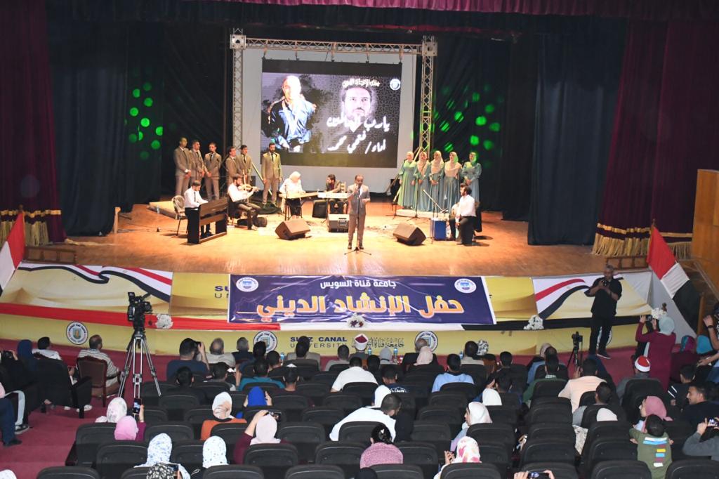 نظمت جامعة قناة السويس أمس الثلاثاء، أمسية رمضانية وحفلا للانشاد الديني بمناسبة حلول شهر رمضان المبارك، بمسرح قاعة المؤتمرات الكبرى بالجامعة، بحضور الدكتور أسامة الأزهرى مستشار رئيس الجمهورية للشئون الدينية، والدكتور ناصر مندور رئيس جامعة قناة السويس.