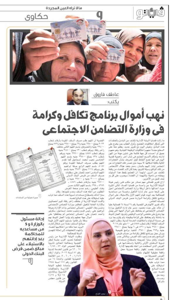 عاطف فاروق يكتب: وزارة التضامن تقر وتعترف بنهب أموال تكافل وكرامة