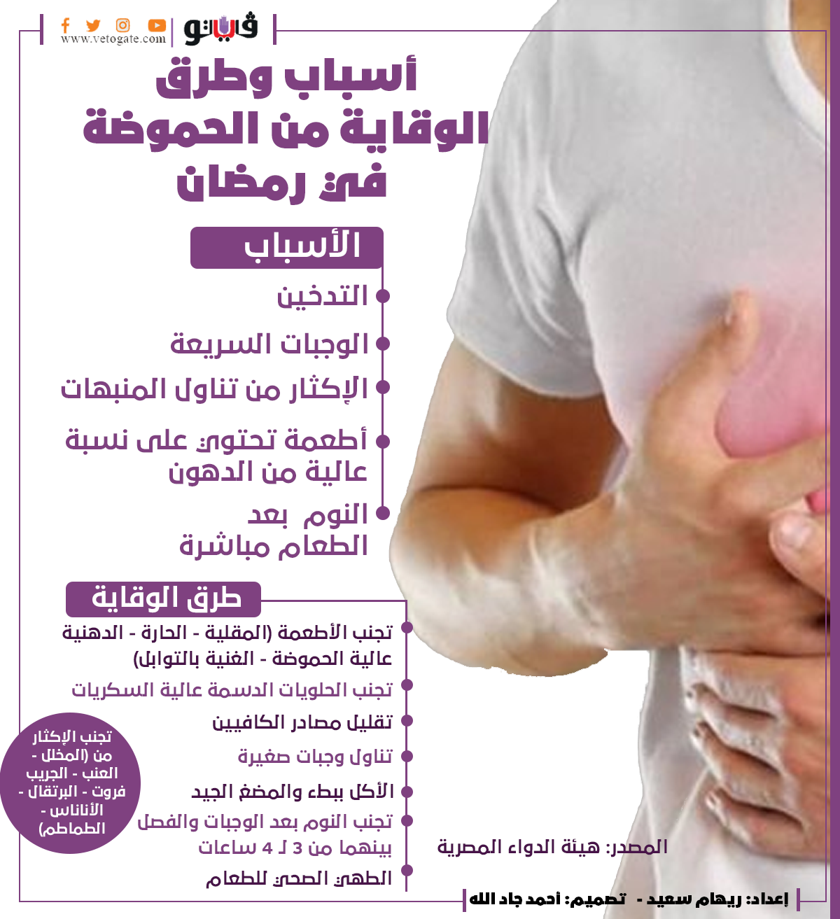 أسباب وطرق الوقاية من الحموضة في رمضان | إنفوجراف الخميس 07/أبريل/2022 - 04:38 م 4/7/2022 4:38:44 PM الحموضة ريهام سعيد شارك طباعة 18 حجم الخط شارك طباعة الحموضة الأطعمة المصنعة اسباب الحموضة ريهام سعيد هيئة الدواء المصرية الوجبات السريعة
