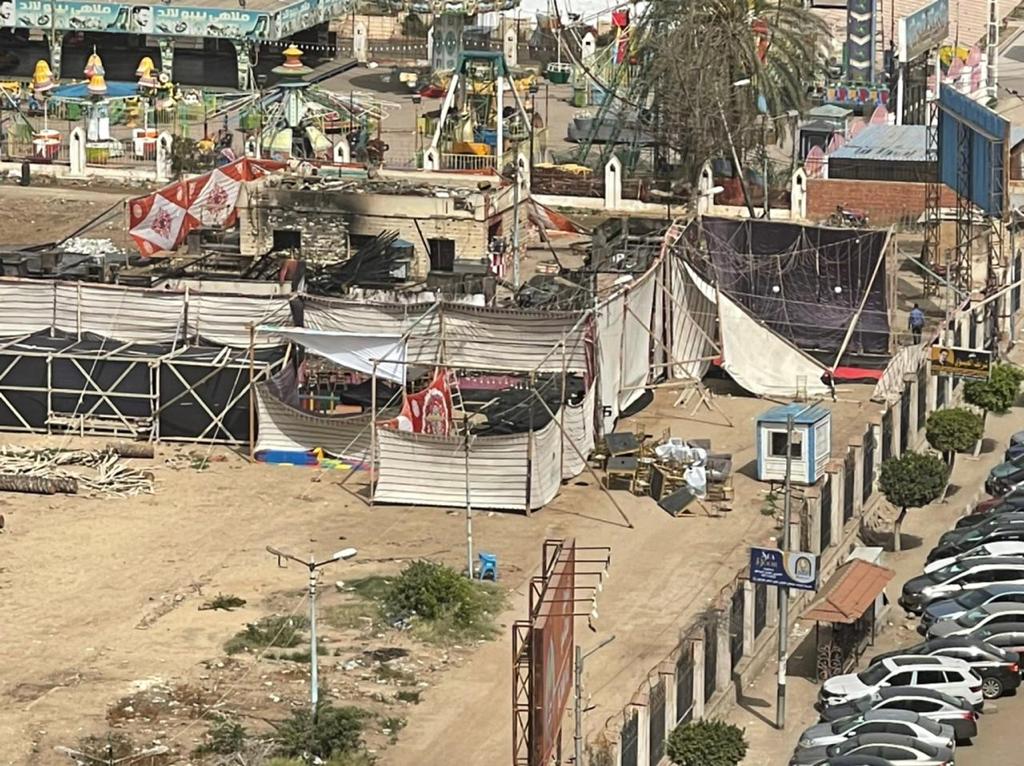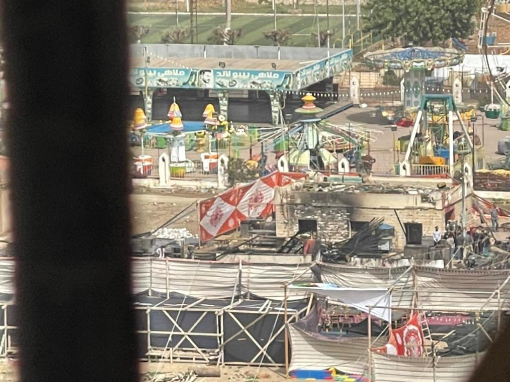 آثار حريق داخل خيمة رمضانية في المنصورة | صور