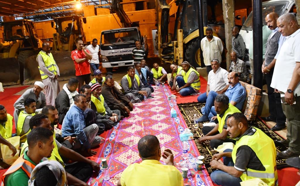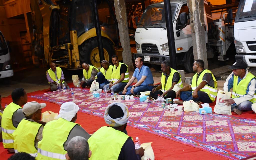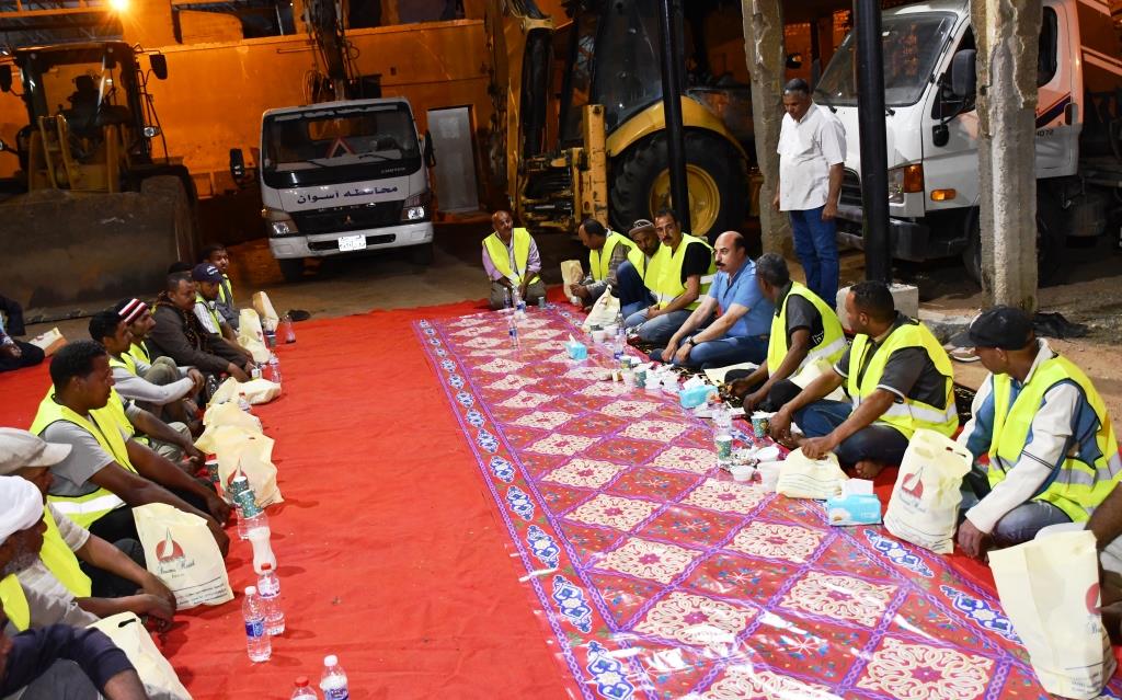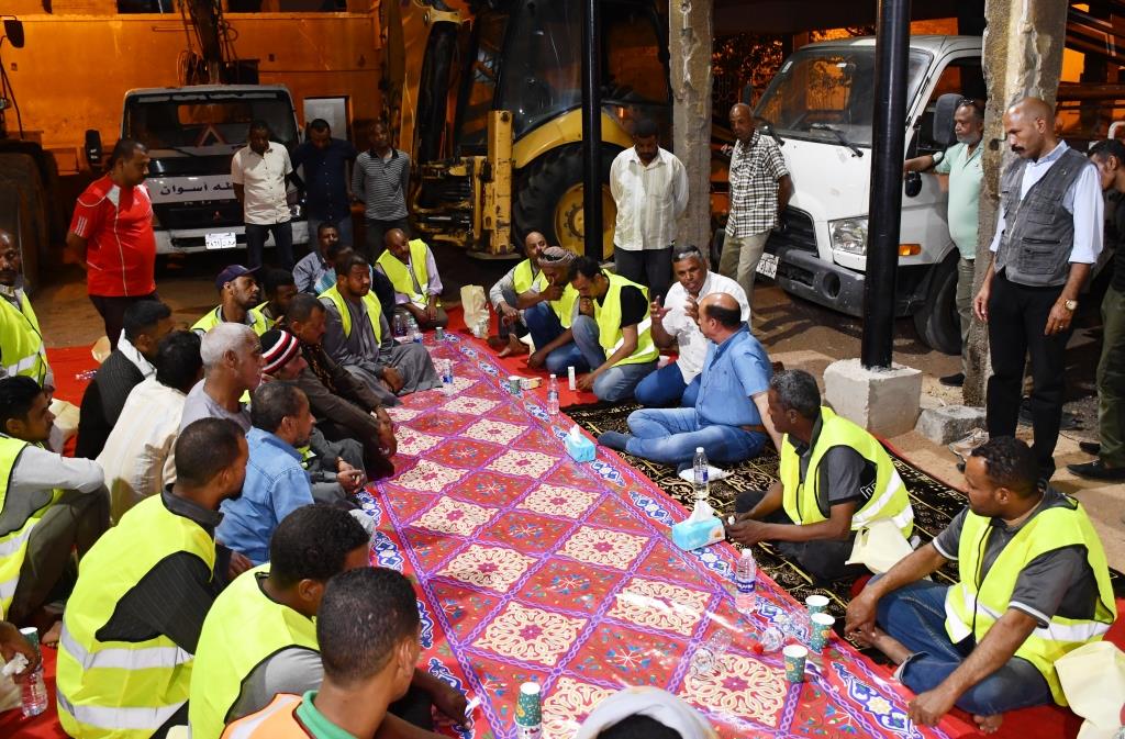 في لفتة طيبة.. محافظ أسوان يشارك عمال وسائقي النظافة إفطار شهر رمضان | صور