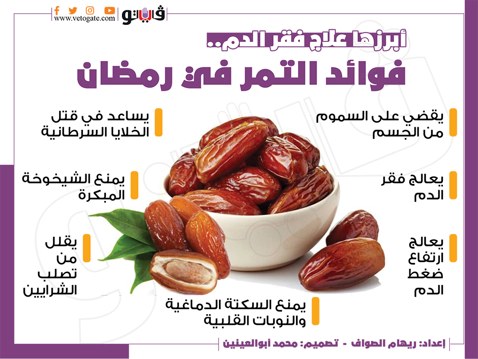 فوائد التمر في رمضان.. أبرزها علاج فقر الدم | إنفوجراف الجمعة 08/أبريل/2022 - 12:50 م 4/8/2022 12:50:55 PM فوائد التمر ريهام الصواف شارك طباعة 18 حجم الخط شارك طباعة فوائد التمر فوائد التمر للحامل فوائد التمر في رمضان أهمية التمر التمر والشفاء من المرض