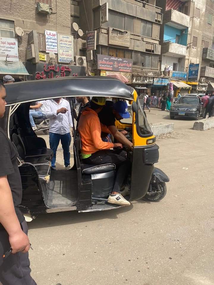 وذلك تنفيذا لقرار اللواء أحمد راشد محافظ الجيزة بحظر سير التوكتوك بشارع محمد أنور السادات وشارع عز الدين عمر والعريش، لتنفيذ الحظر بالضبط والتحفظ على مركبات التوكتوك واتخاذ الإجراءات القانونية اللازمة حيال ذلك.