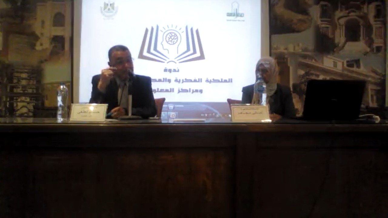 وأدارها الدكتور حسام لطفي مقرر اللجنة، وحاضرت بها الدكتورة أماني مجاهد، أستاذ المكتبات والمعلومات جامعة المنوفية وتحدثت الدكتورة أمانى مجاهد حول دور مؤسسات المعلومات في شتى القضايا، التي بها وعى، فمؤسسات المعلومات تلعب دورًا مؤثرًا في كل المجالات، معرفة بمؤسسات المعلومات، وحقوق التأليف والنشر، والدور المنوط بمؤسسات المعلومات لدعم المصنفات، مشيرة إلى أن مؤسسات المعلومات هي حلقة الوصل بين الناشر وبين المستفيد، والتي تنقل أفكار المؤلف، وإبداع الأشخاص، وهي التي تتعامل مع أعلى مستويات الإنتاج البشري، ألا وهو الإنتاج الفكري، وتحكم مؤسسات المعلومات المكتبات الكبرى والمتخصصة، وكذلك مراكز البحوث ومراكز المعلومات الملحقة بالوزارات والهيئات الحكومية والخاصة.